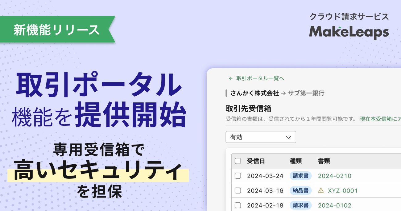 クラウド型請求管理サービス MakeLeaps 新機能「取引ポータル」機能を提供開始