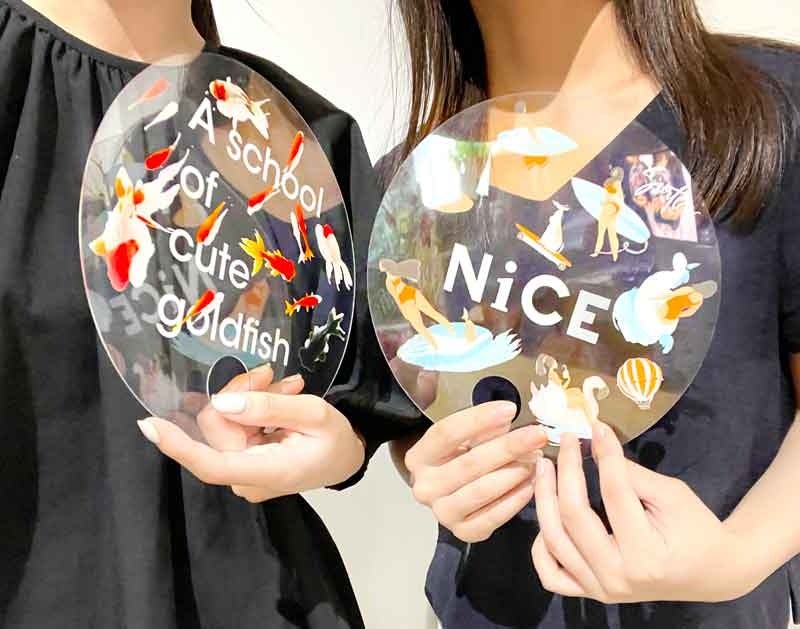 ▲水にも強く耐久性抜群!クリア感が魅力的なPET素材の「丸うちわ印刷」