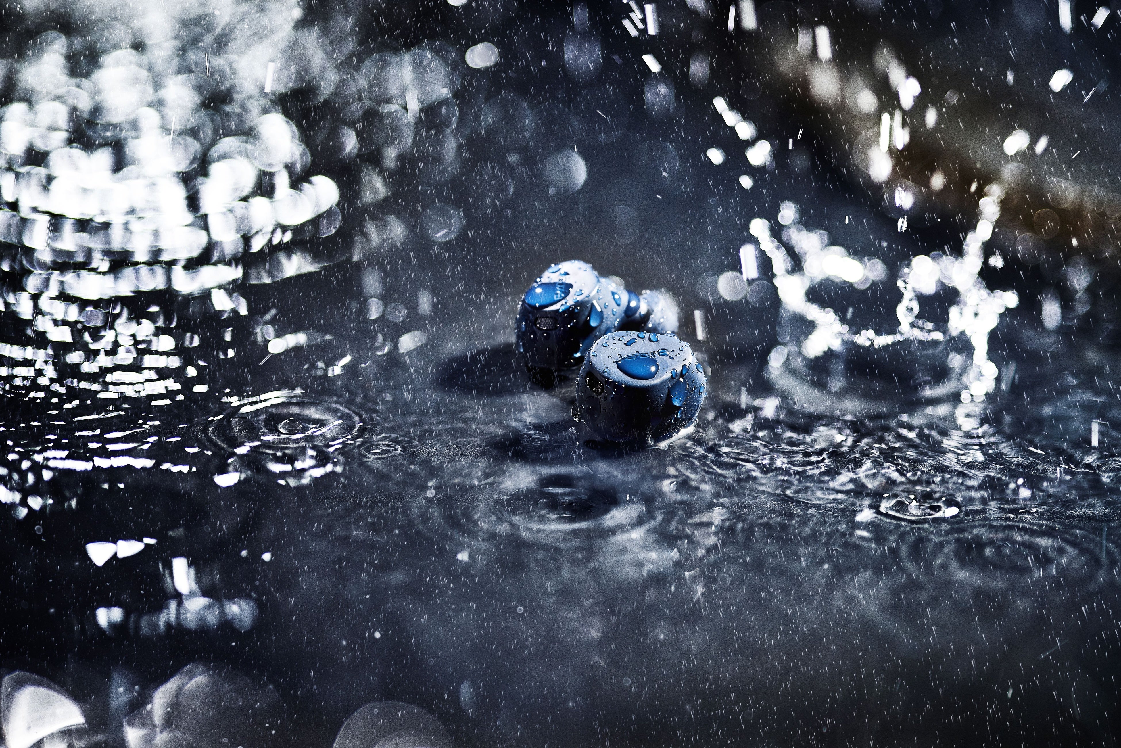 米国MIL規格(MIL-STD-810H)の環境耐久テストにおいて、湿度や温度、衝撃など9項目をクリアしている、非常に耐久性の高い完全ワイヤレスイヤホンです。イヤホン本体は、IPグレードの最上位であるIP68準拠の防塵・防水性能。充電ケースもIP54に準拠しているので、天候を気にせず携帯できます。
