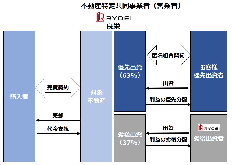 安全性を⾼める仕組み:優先劣後⽅式(優先63%、劣後37%) ※銀⾏借⼊はありません