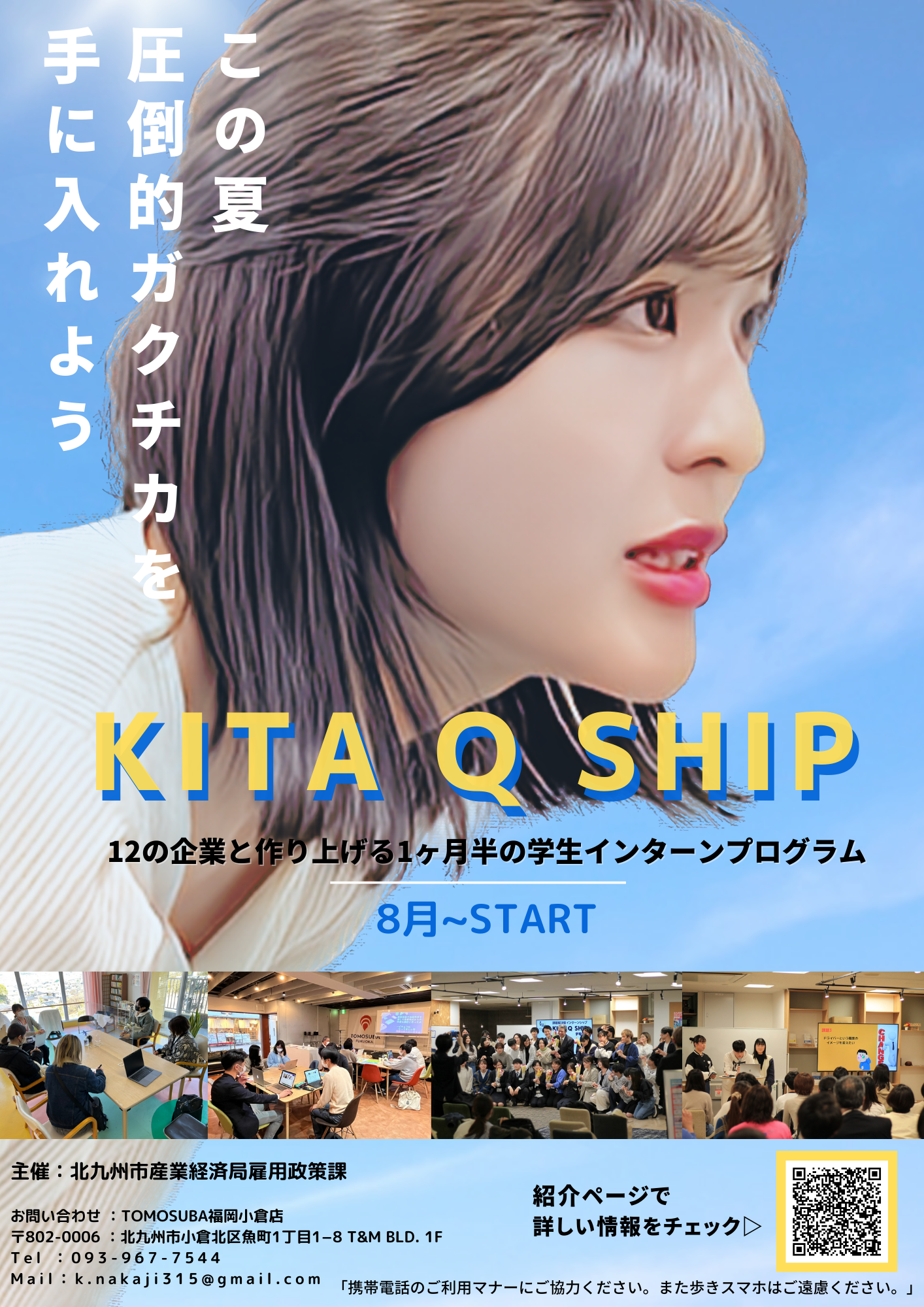 KITA Q SHIPは、夏休みの1ヶ月半の間(2023/8〜9)、学生と企業がチームとなって課題解決を学ぶ、北九州市主催の超実践型インターンシップです。