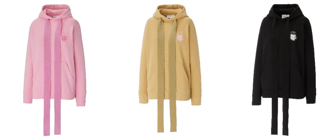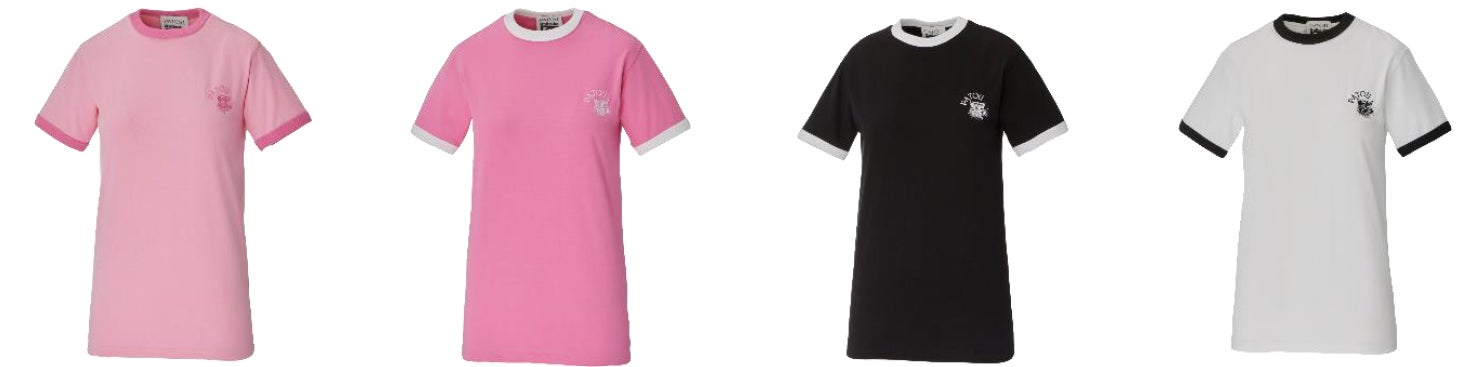コレクションには、パトゥのアイコンカラーであるピンクとグログラン生地を用いたアパレルアイテム(フーディー、Tシャツ、アクセサリー)もラインアップ。