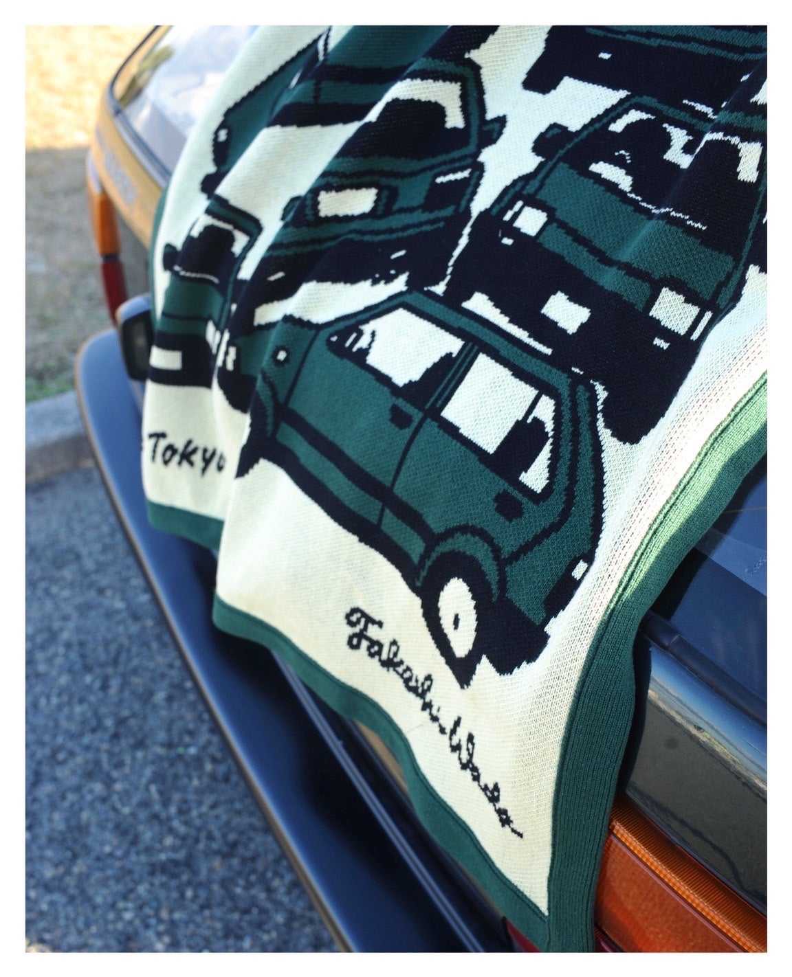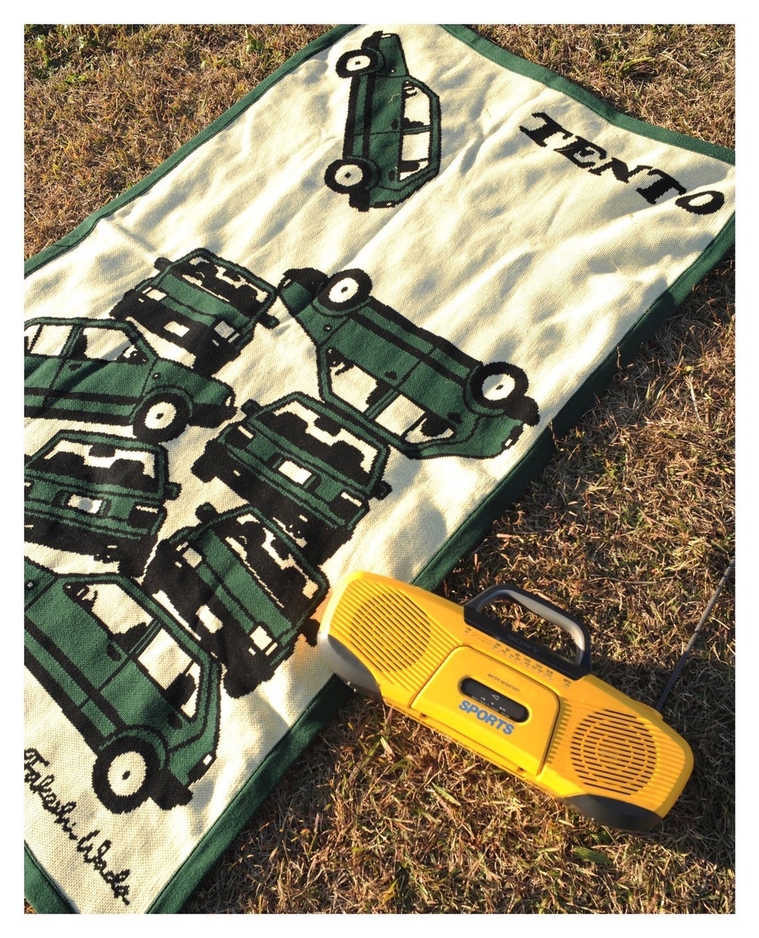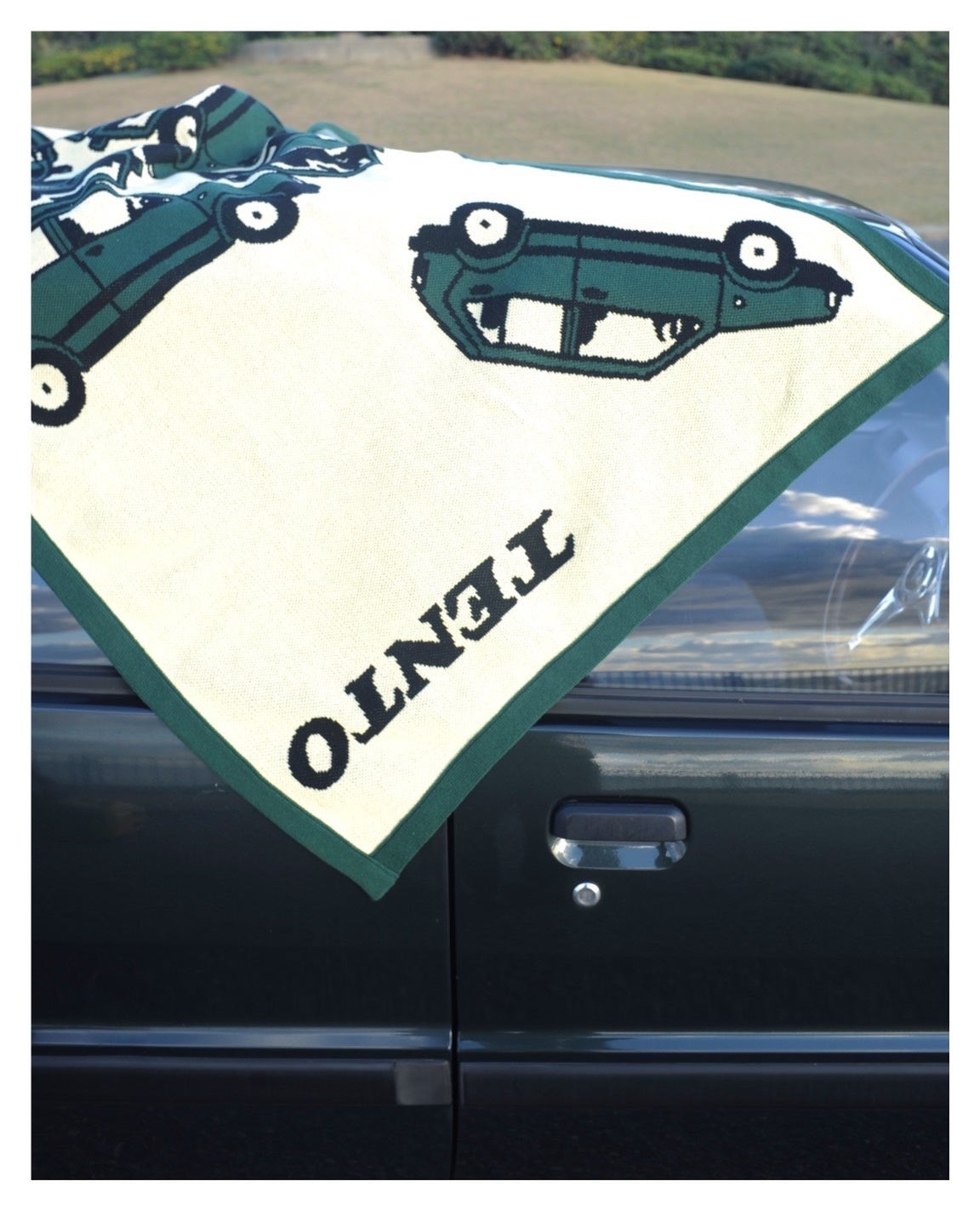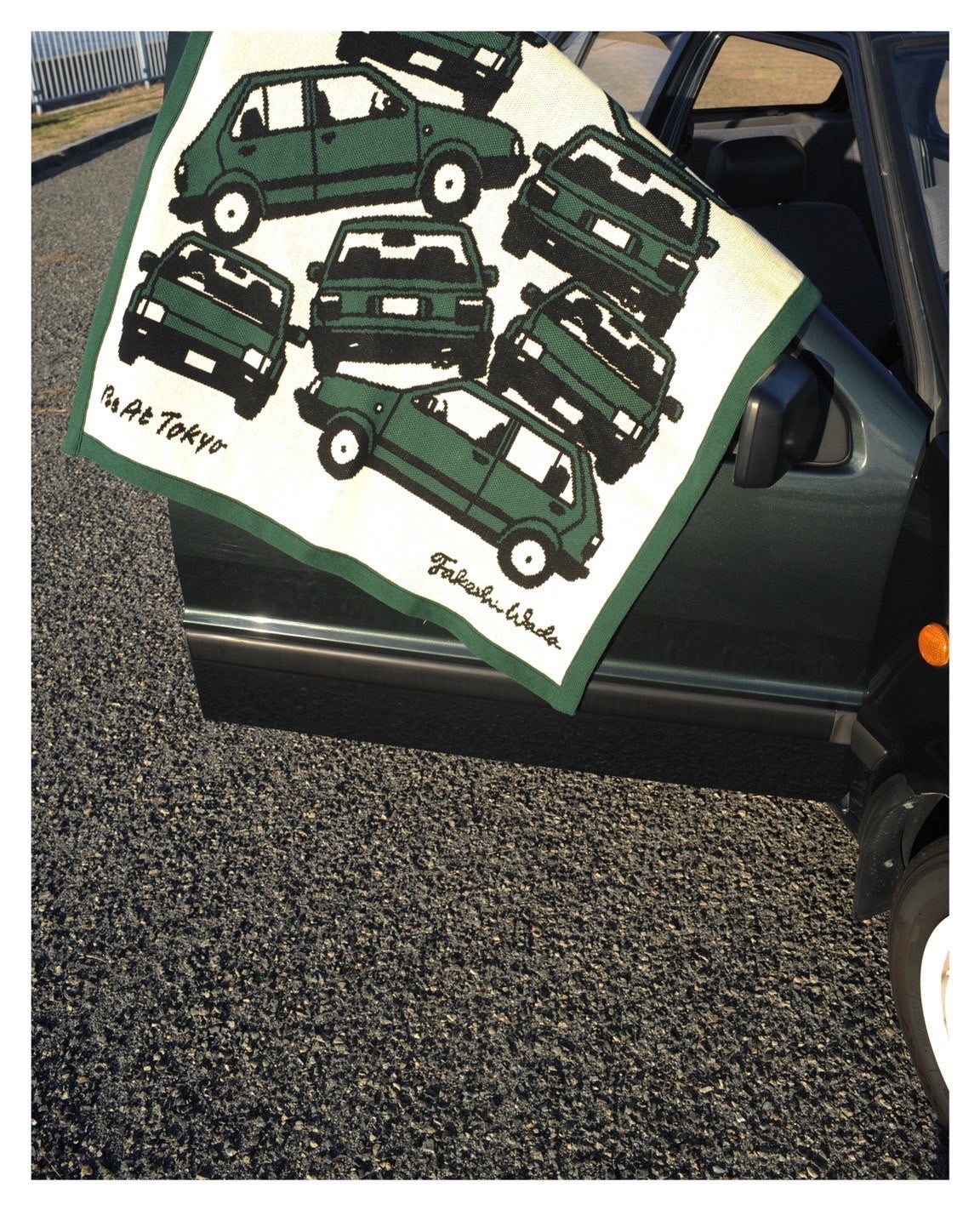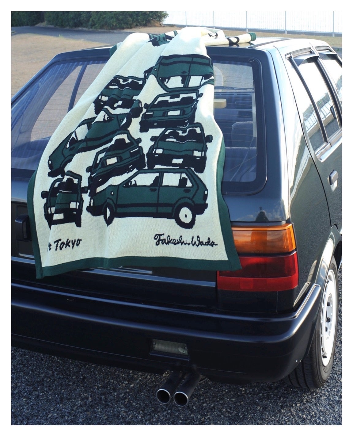 今回のグッズは、アーティストTakeshi Wadaが描き下ろした自動車モチーフのブランケットとなっています。デザインは、Tentoデザイナーの愛車である、初代日産マーチ(K10型系)から着想を得ています。またK10型系マーチは世界的に著名なデザイナー、Giorgetto Giugiaro(ジョルジェット・ジウジアーロ)がデザインした事でも有名。現代のカーデザインには希少な四角いフォルムに、Takeshi Wadaもまた魅力を感じ、今回のデザインが完成しました。コットン地のブランケットはキャンプやアウトドアにも、インテリアや膝掛けにもうってつけのデザインです。当日はTentoのオリジナルアイテムと共に、Takeshi Wadaの新作アート作品も購入いただけます。
