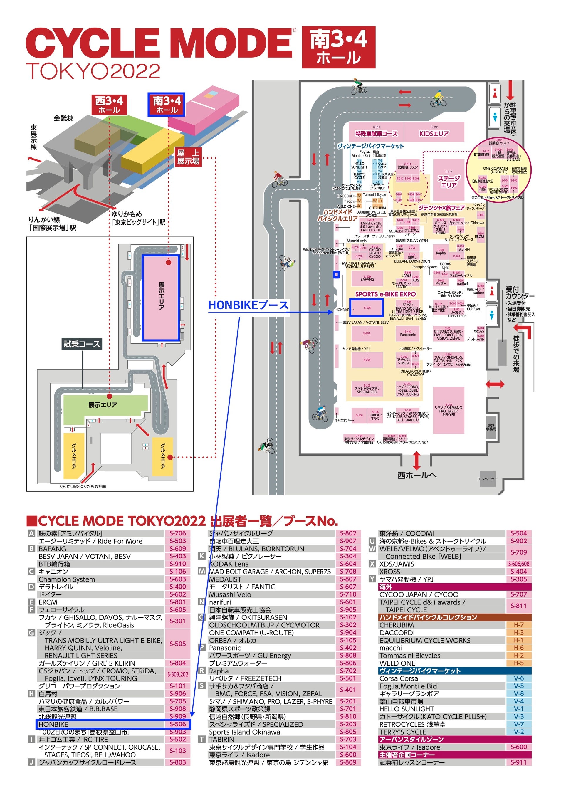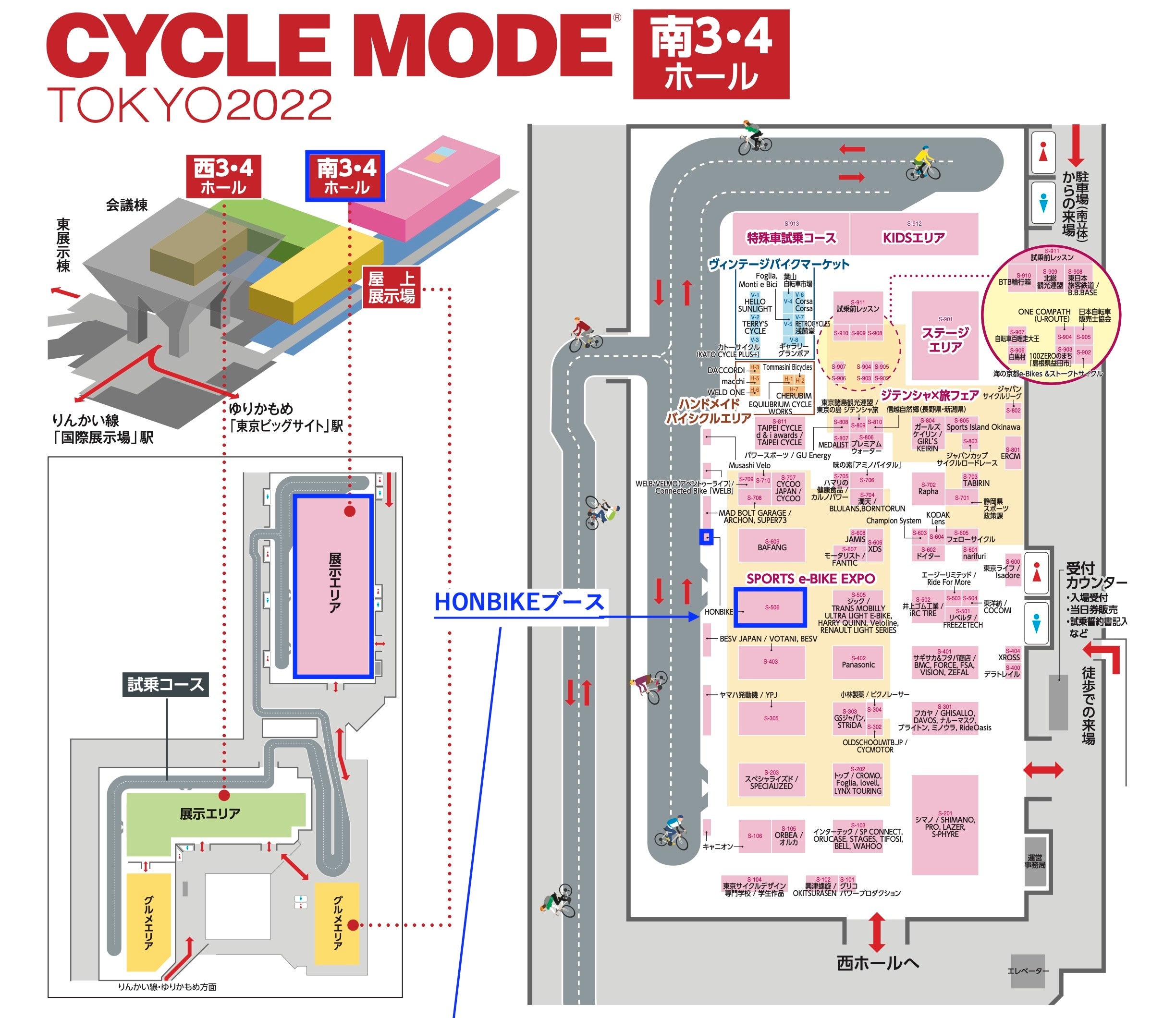 東京ビッグサイト(南3-4)に設置される「HONBIKEブース」では、これまでに発売した9色のHONBIKEの展示・試乗に加え、昨年行われたミス・ユニバース2021で使用されたオリジナルHONBIKEの展示も行います。ブース内に作られた特設ステージでは、サイクルイベント初となる「HONBIKEと水着モデルによるランウェイショー」が行われます。