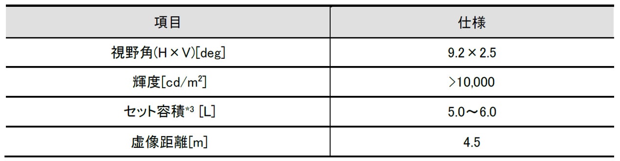 小型化にするため、虚像距離は短くなっていますが、AR要素を取り込んだ表示画像の位置、大きさなどを最適化することで、遠近感を持たせ、高い視認性を確保しています。
