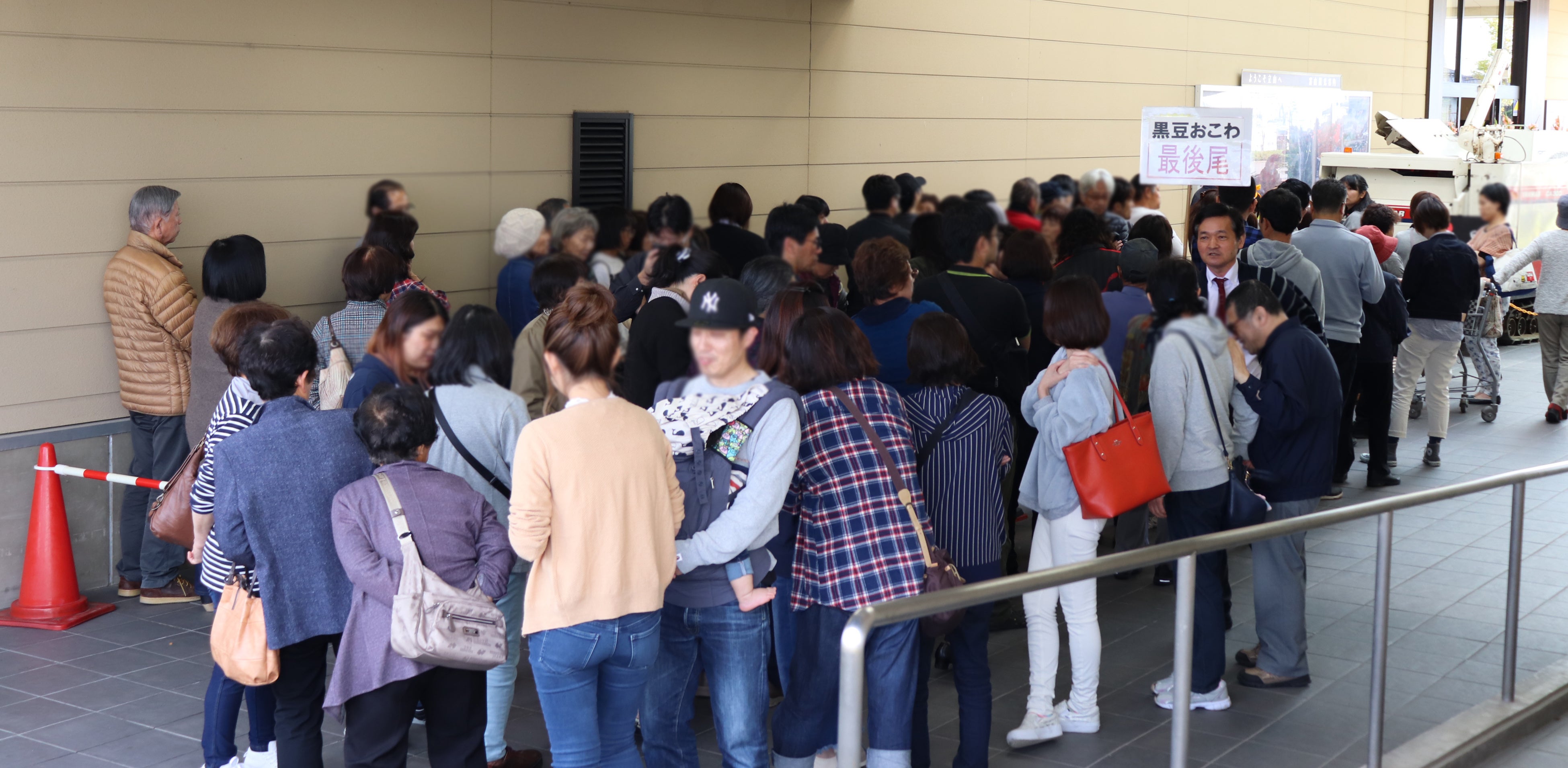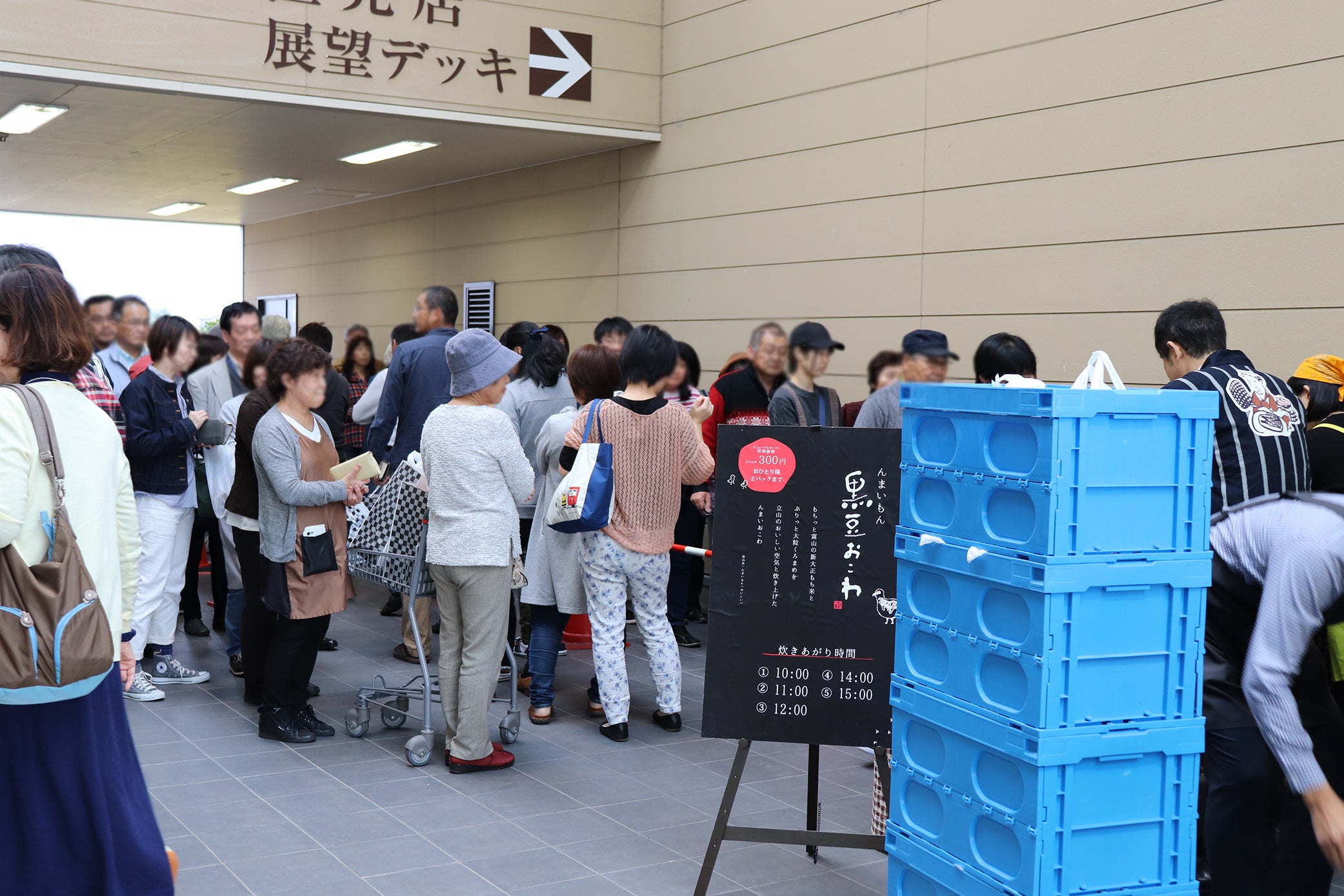 3日間でおだんご約10,000本を販売(2018年工場祭調べ。)・黒豆おこわは、毎回大行列ができ完売するほどの大人気です。