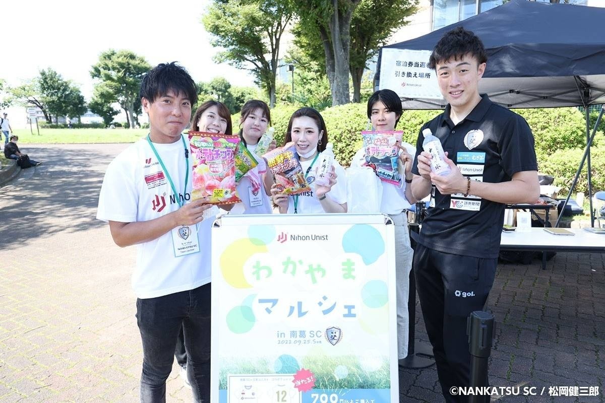 観覧客の中から抽選で当選した3名に、日本ユニストが運営する「SEN.RETREAT(https://sen-retreat.com/)」「Willows Hotel 大阪新今宮(https://willows-hotel.com/)」の宿泊招待券をプレゼント。また、わかやまマルシェの購入者にも抽選で、日本ユニストのコラボユニフォームを贈呈しました。