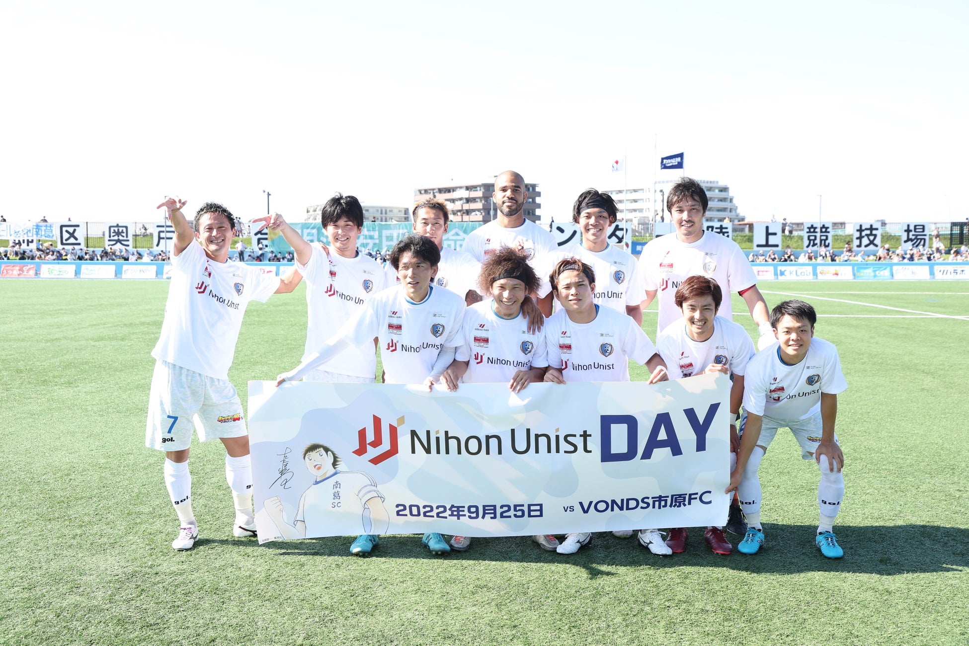 不動産開発・ホテル運営の株式会社日本ユニスト(大阪市、代表取締役:今村亙忠)は、パートナー契約を締結している関東サッカーリーグ1部所属のサッカークラブ・南葛SCのリーグ戦最終試合(開催日:9月25日 対戦相手:VONDS市原FC)で、冠マッチ「日本ユニストDAY」を開催したことを報告いたします。