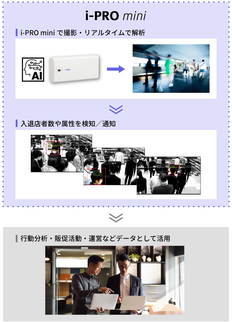 i-PROのエッジAI小型ネットワークカメラ「i-PRO mini」は、2022年2月の発売以降、高いAI処理能力、名刺大の小さなサイズ、設置の柔軟性などが評価され、AI画像認識を利用した様々な分野のDX化に活用されています。今回の2社との協業により、その活用の場が更に拡大します。