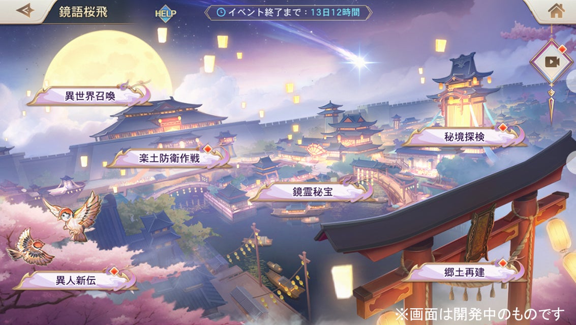 今回のイベントでは、全12章の新編ストーリー「鏡語櫻飛(きょうごおうひ)」が実装されます。神器「崑崙鏡」が割れたことにより、時空の法則が乱れ、オリエントアルカディアと戦国の世が重なり始める。果たせぬ願いを叶えるためにタイムスリップしてきた戦国武将たち、そして仲間との居場所を守るために戦う主人公たち。決して交わることのなかった者たちは縁を結び、新たなる旅を始めようとする……