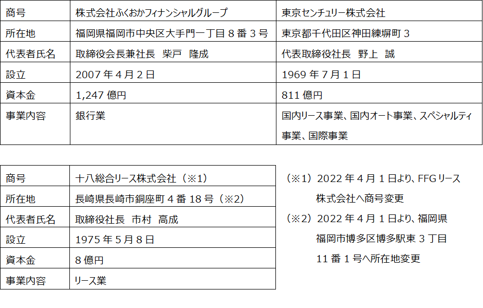 株式会社ふくおかフィナンシャルグループと東京センチュリー株式会社のリース事業に関する資本業務提携契約の締結、及び十八総合リース株式会社の商号・本社所在地の変更のお知らせ