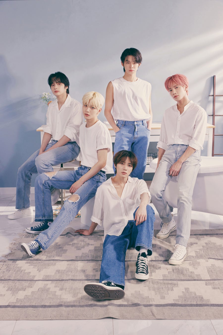 SOOBIN、YEONJUN、BEOMGYU、TAEHYUN、HUENINGKAIの5人で結成された「TOMORROW X TOGETHER」。グループ名は’それぞれ違う君と僕がひとつの夢で集まって共に明日を作って行く’という意味を持つ。