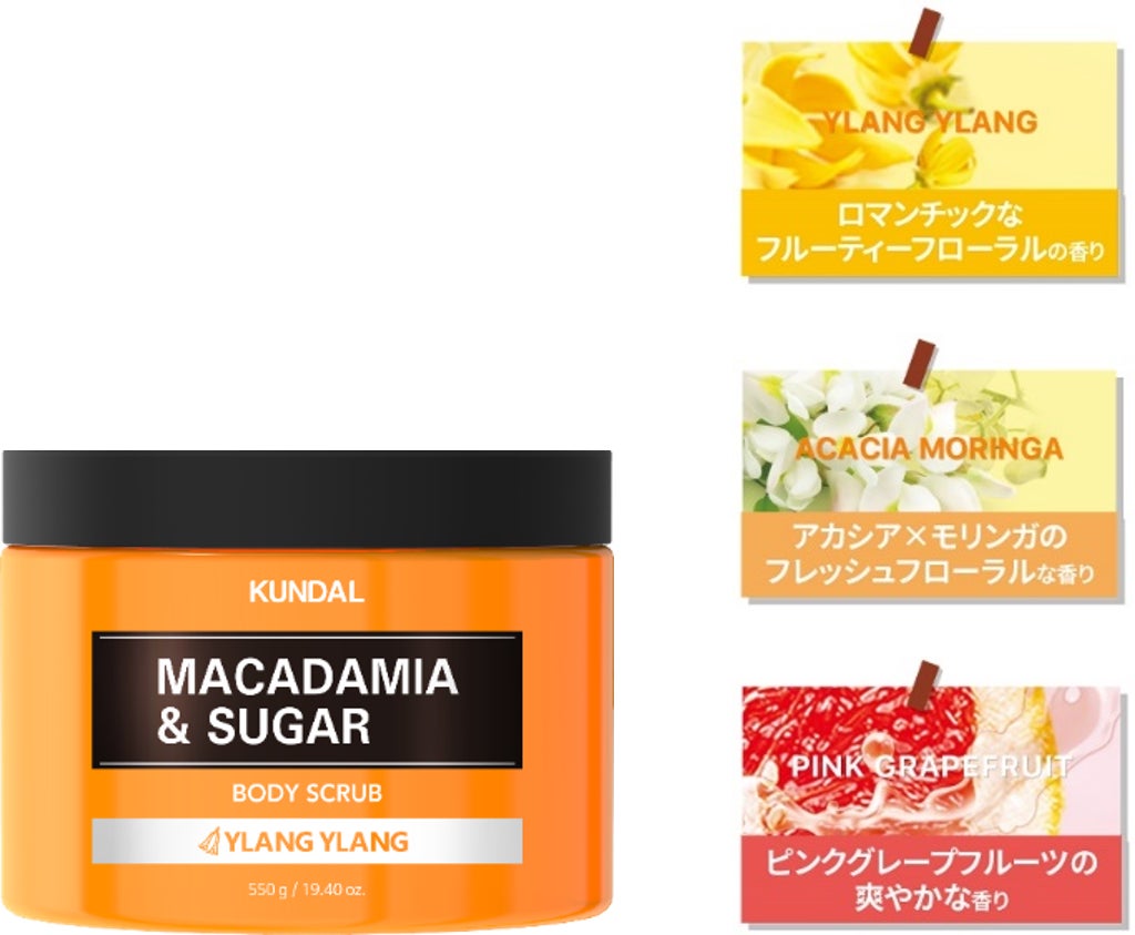 ●クンダル M&シュガー ボディスクラブ<イランイラン> 550g ¥2,200(税込)