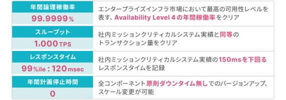 TISで設定したシナリオでミッションクリティカルな要件を満たしているか検証を行った結果、高い可用性とスループットを実現しています※4。