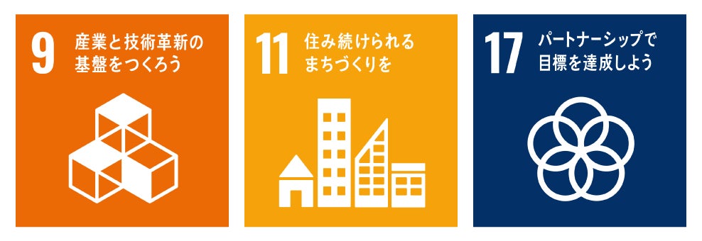※今回の取組は、SDGsの17のゴールのうち、特に9,11,17番に貢献するものと考えています。