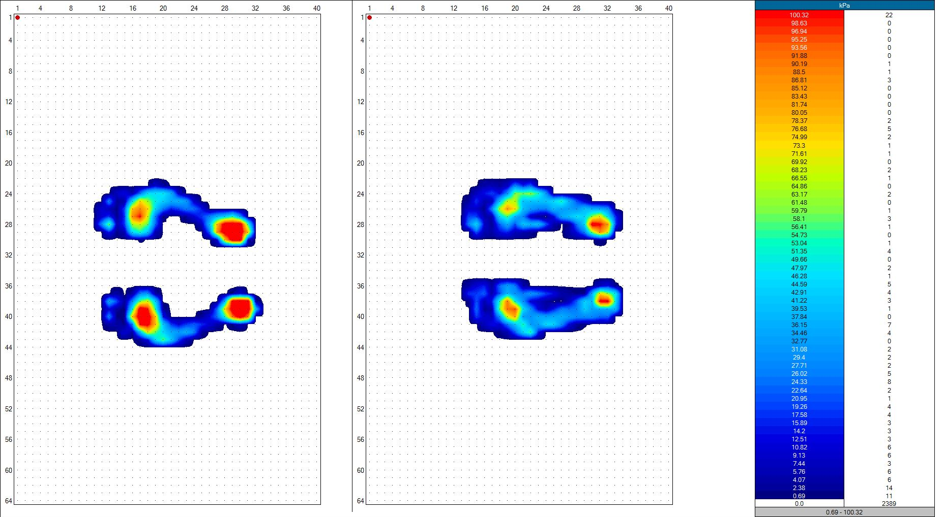 普通に立った場合の平均圧⼒(40.1kpa)に対し、immersepadWalkの上に立つとピーク圧⼒(30.09kPa)が25%減圧しました。