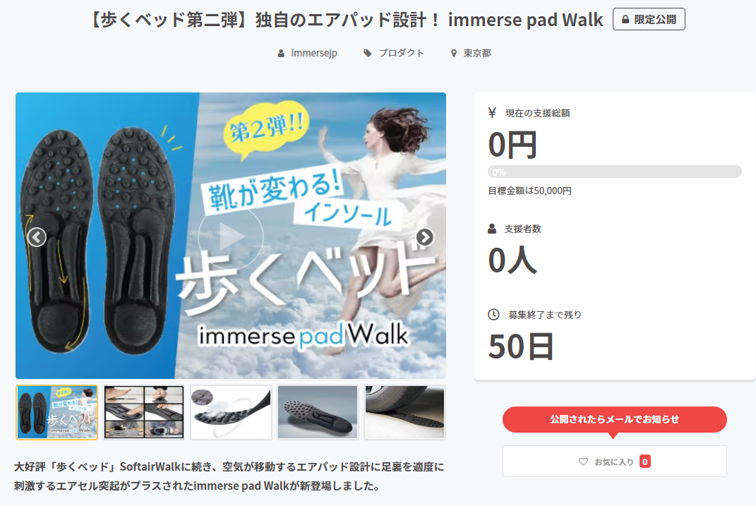 【歩くベッド第二弾】独⾃のエアパッド設計!⾚外線内臓インソール immerse pad Walk(イマースパッドウォーク)をキャンプファイヤーで限定発売!