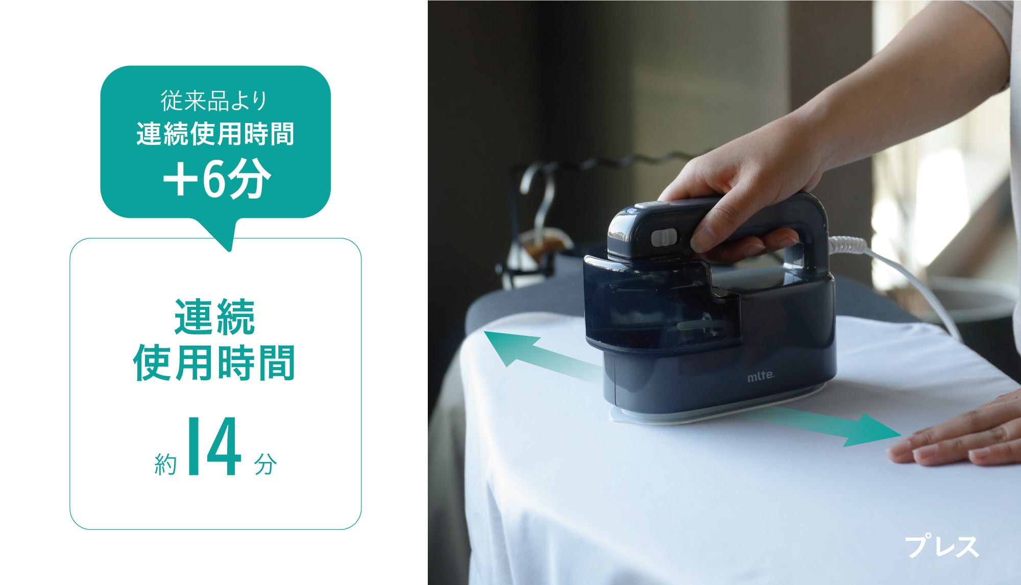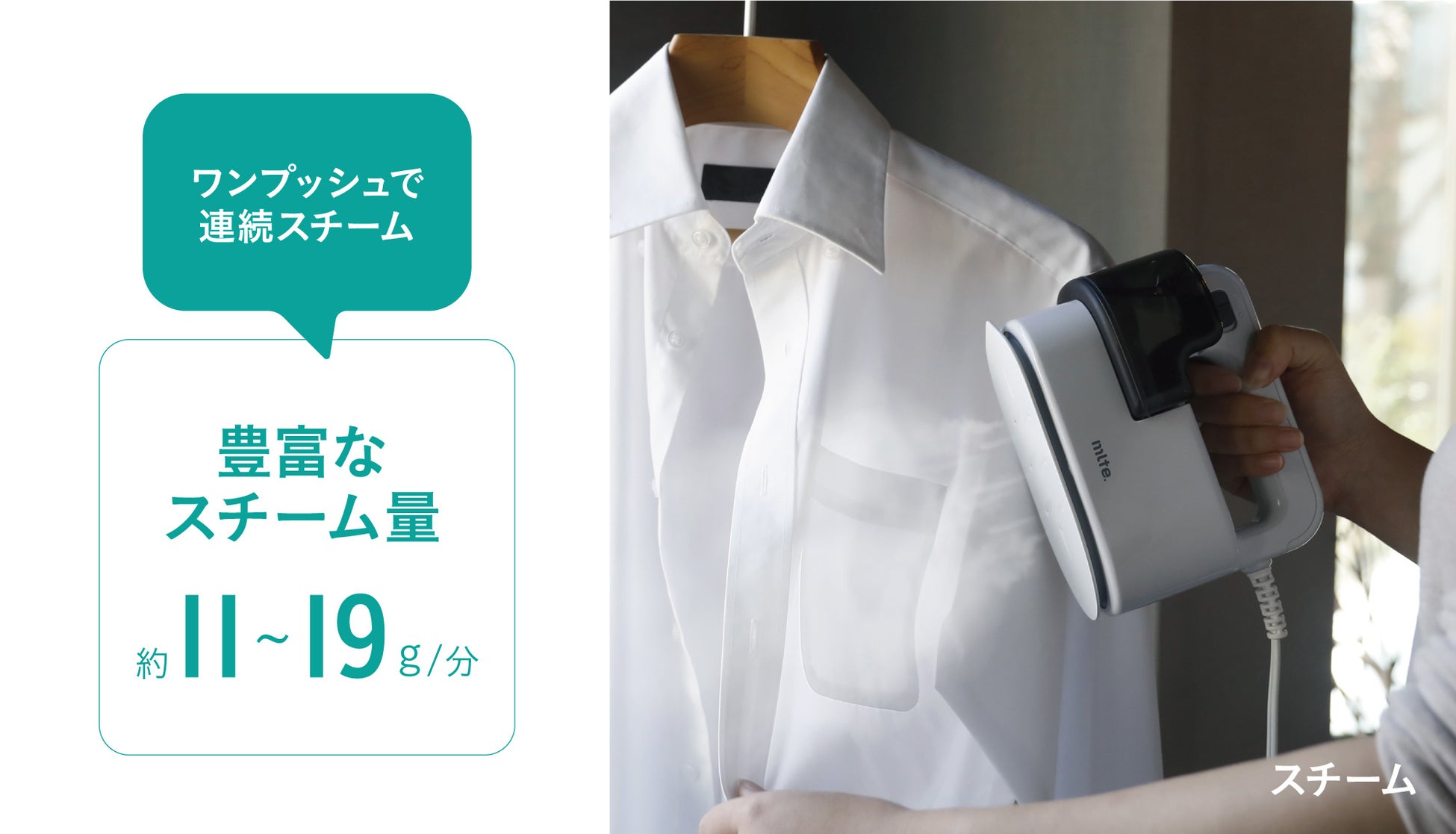 - “たっぷり連続スチームで、楽にシワとり”が可能(スチーム&プレス)