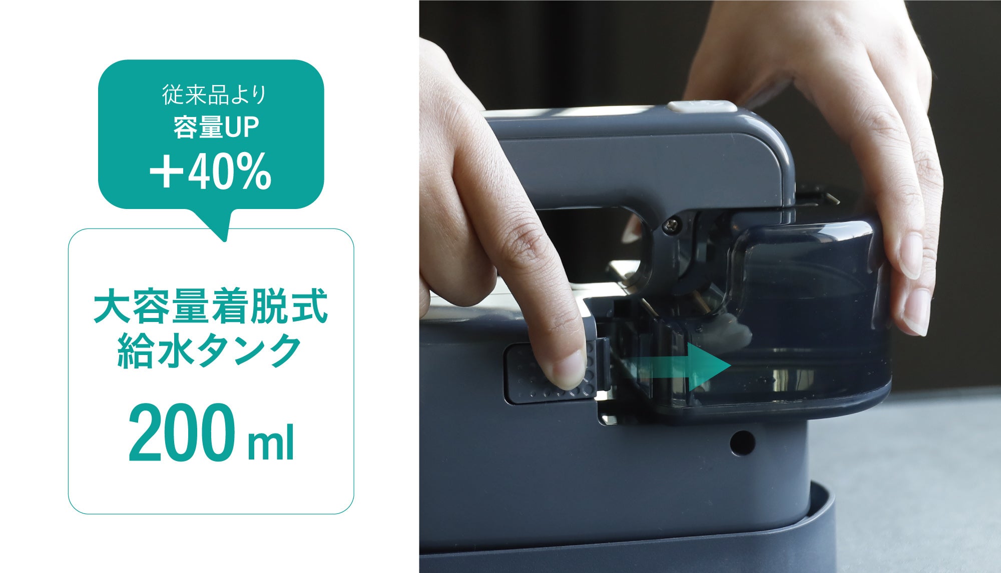 給水タンク容量が200mlもあるので、何度も給水をする手間がないのは嬉しいポイント!