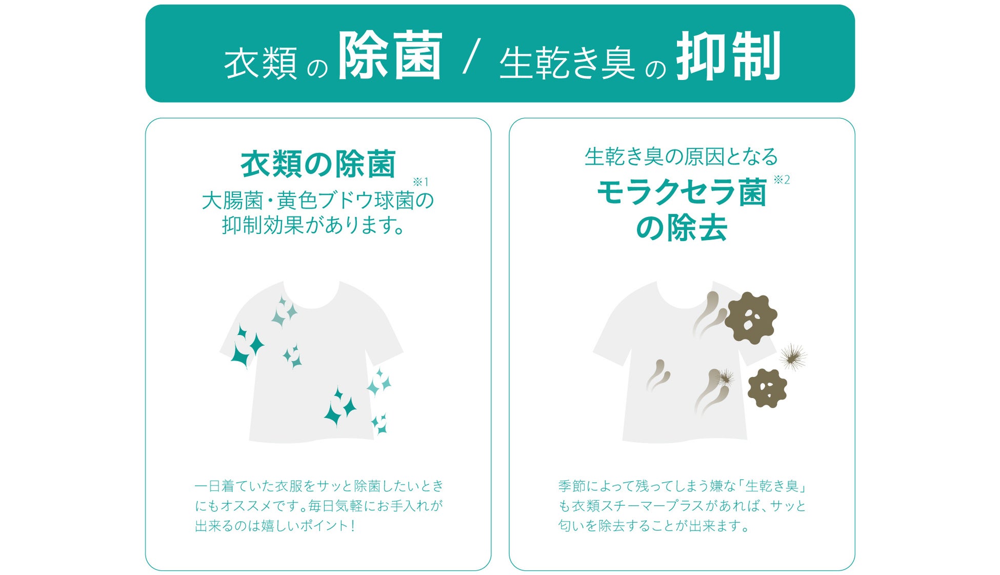 シワを伸ばすだけでなく、毎日衣類の除菌/生乾き臭の除去が出来るのは嬉しいポイントですよね!