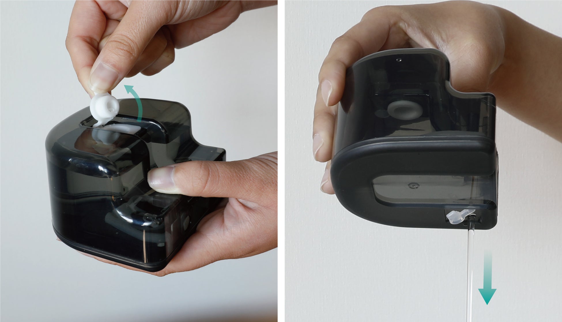 給水用の蓋と排水用の蓋を開き、給水タンクを斜めにすると勢い良く、中に残った水を排水することが出来ます。