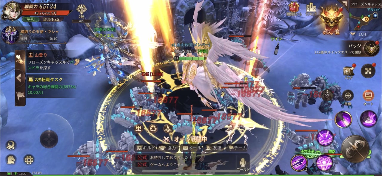 処女天使「アテナ」を解放することが出来ました!天使機能は「必殺技」のような立ち位置で解放でき、ワンタップでボタンを押すと、下画像のようにプレイヤー自身が天使に変身し、ド派手な必殺技で敵を掃討することが出来ます!