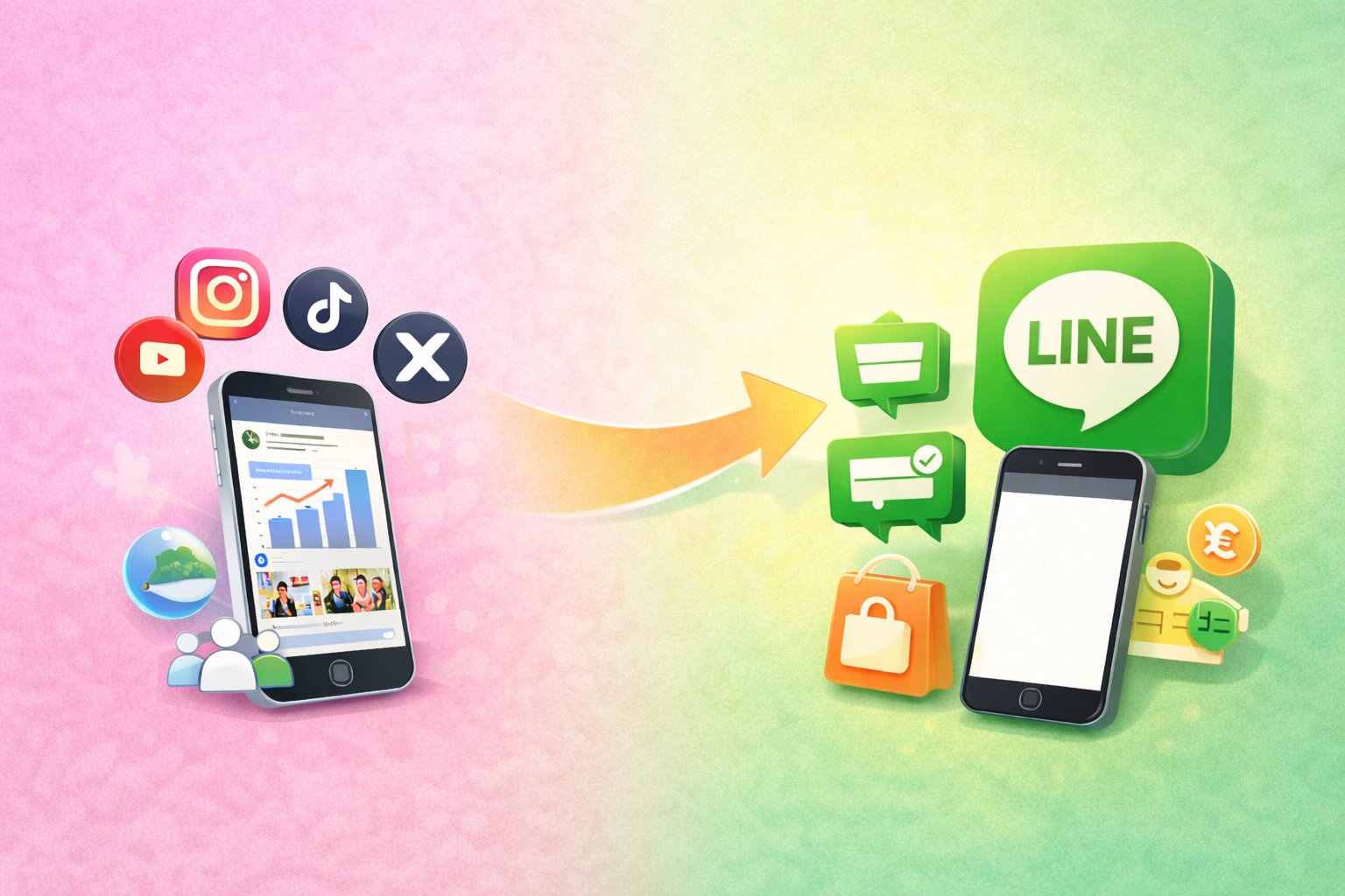 サービスでは、SNSによる認知拡大とLINEによるリピート促進を分断せず、一体的に設計します。