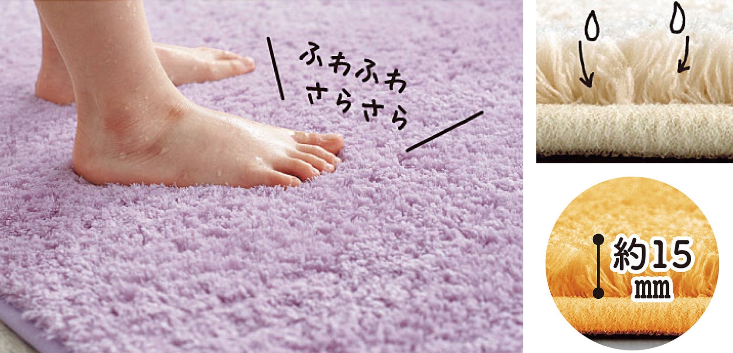 毛足の長さは最長約15mm。お風呂上がりもサラッと吸水速乾。