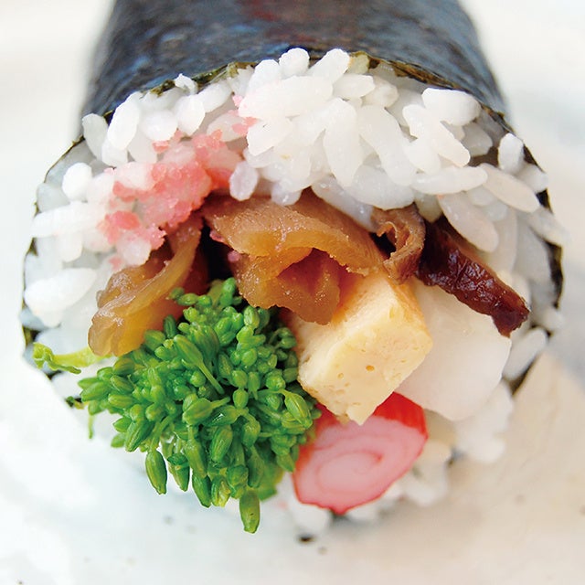 ツナマヨ、玉子、かに風味蒲鉾の3種で巻き上げたお子様も食べやすい恵方巻。濱田屋手づくりの玉子焼きは程良い甘さでお子様にも大人気のメニューです!