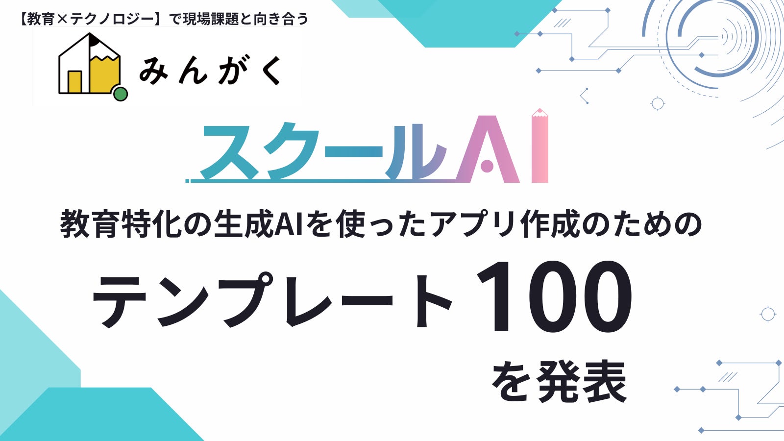 株式会社みんがく、生成AI活用の教育特化アプリ作成プラットフォーム「スクールAI」で使える、教育現場の課題に特化したテンプレート100を発表