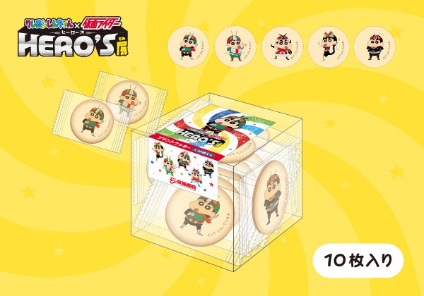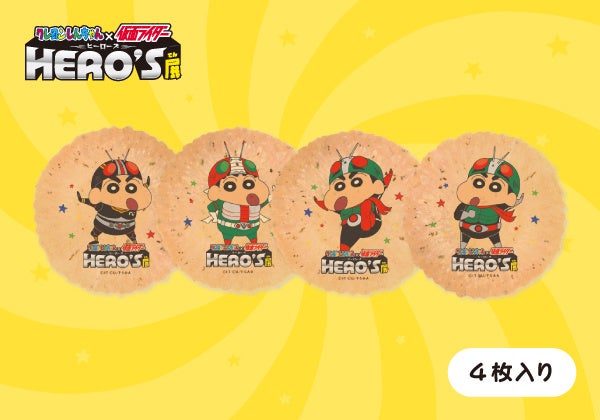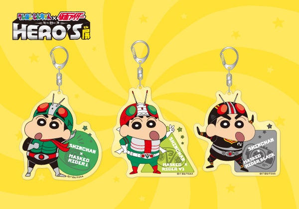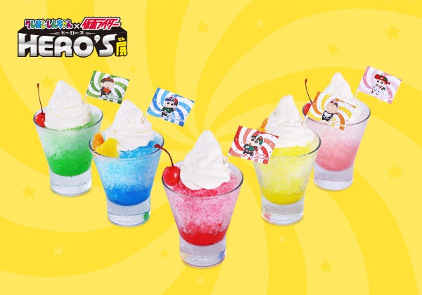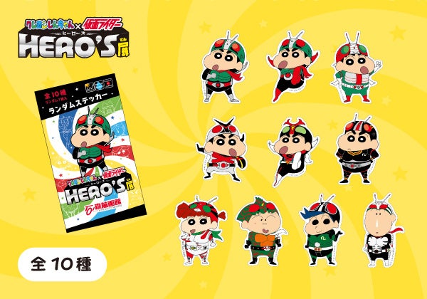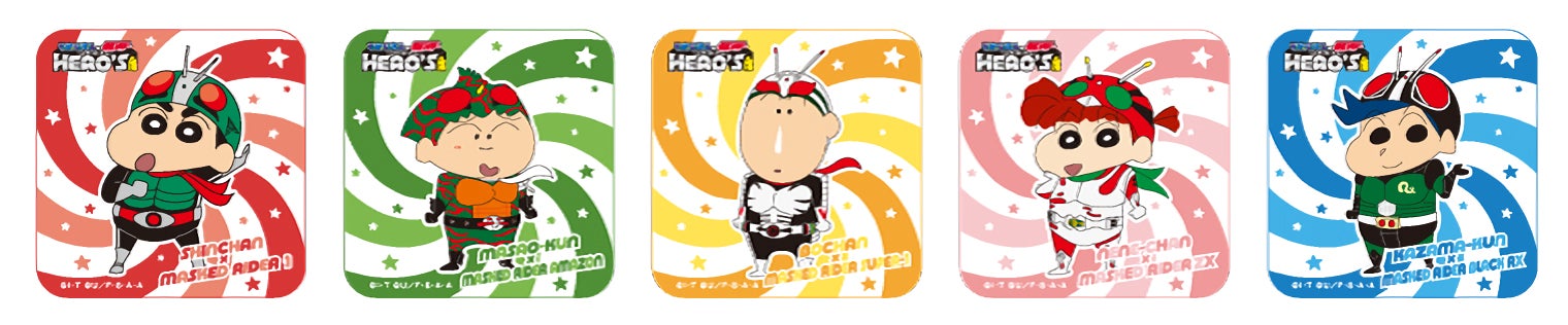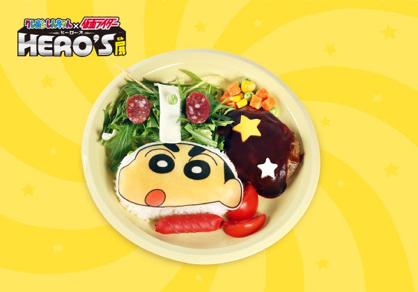 さらに、正義のヒーロー「アクション仮面」や「カンタムロボ」、しんのすけが生み出した救いのヒーロー「ぶりぶりざえもん」など『クレヨンしんちゃん』に登場するおなじみのヒーローたちにスポットライトを当てたコーナーも登場!『仮面ライダー』シリーズとのコラボイラストを使用したオリジナルグッズやコラボメニューなど、連動企画も盛りだくさん!