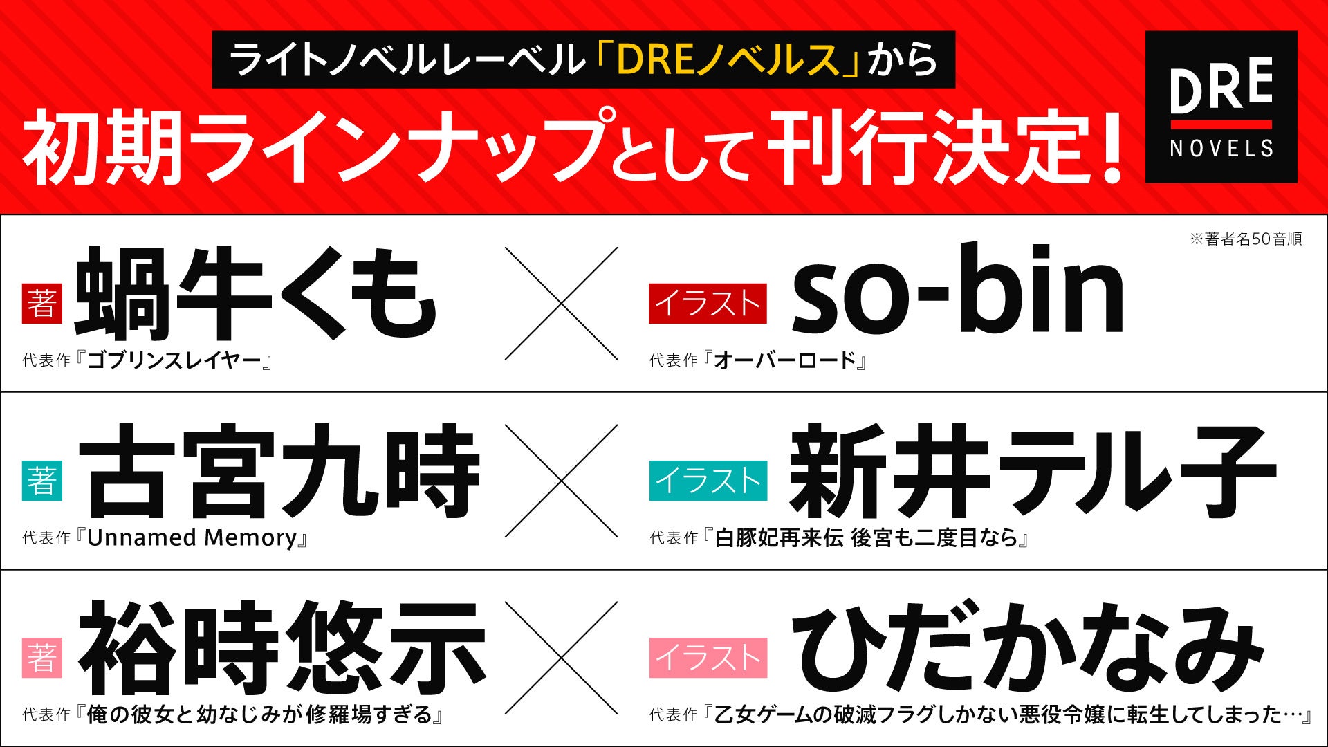 蝸牛くも×so-binが初のタッグを組む新作小説ほか、DREノベルスの初期ラインナップを一部公開!