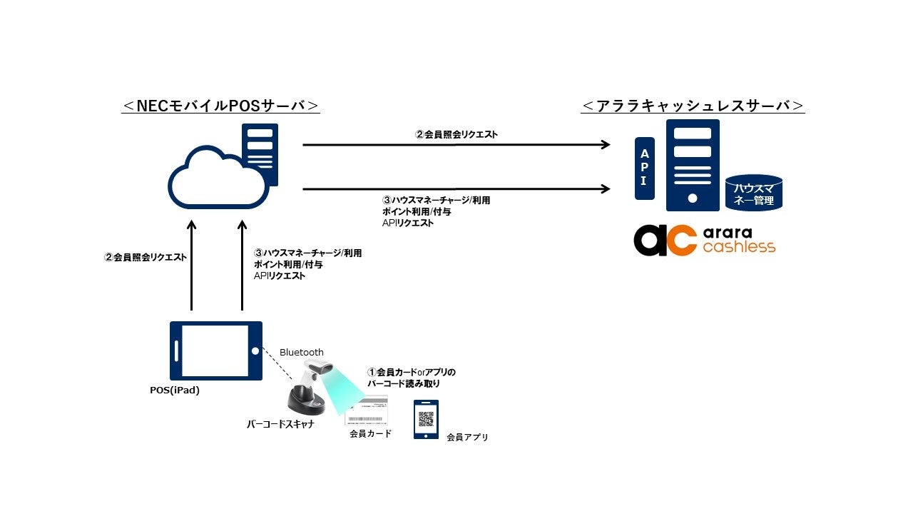 日本電気株式会社(本社:東京都港区、代表取締役執行役員社長 兼 CEO:森田 隆之、以下NEC)は2023年2月1日(水)、サブスク型POS「NECモバイルPOS」の最新バージョン(Ver2.47.0)において、株式会社バリューデザイン(本社:東京都中央区、代表取締役社長: 林 秀治、以下バリューデザイン)が提供するクラウド型独自 Pay(ハウス電子マネー)発行サービス「アララ キャッシュレス」と連携を開始しました。