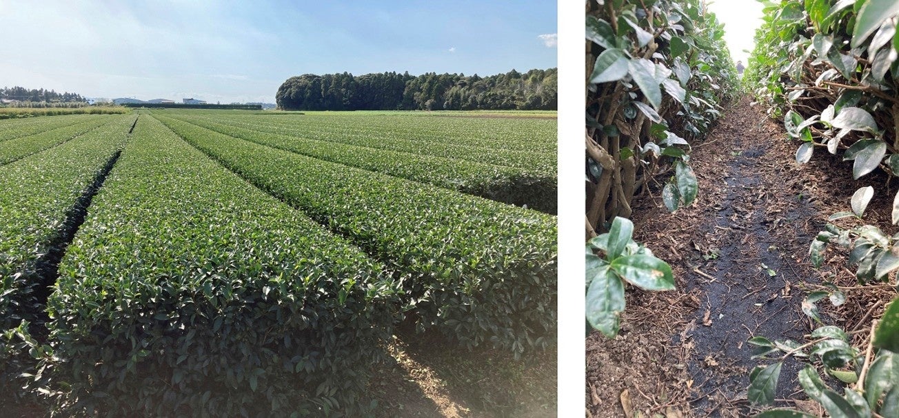 今回の実証実験では、チャノキ※5を栽培するサントリーの契約農場において、通常の有機肥料使用栽培と、高機能バイオ炭を散布したうえでの有機肥料使用栽培を行い、農作物に与える影響を調査・比較する予定です。すでに完了している第1期収穫では、高機能バイオ炭を散布した農地において、農作物は通常時と同等の質を維持しつつ、収穫量が増加することを確認しています。同結果を踏まえ、第2期以降も両社で実証実験を重ね、高機能バイオ炭の効果や栽培効率向上にいたる諸条件を引き続き検証するとともに、従来の農業手法と同等の収穫率が期待できる再生農業手法の確立を目指します。