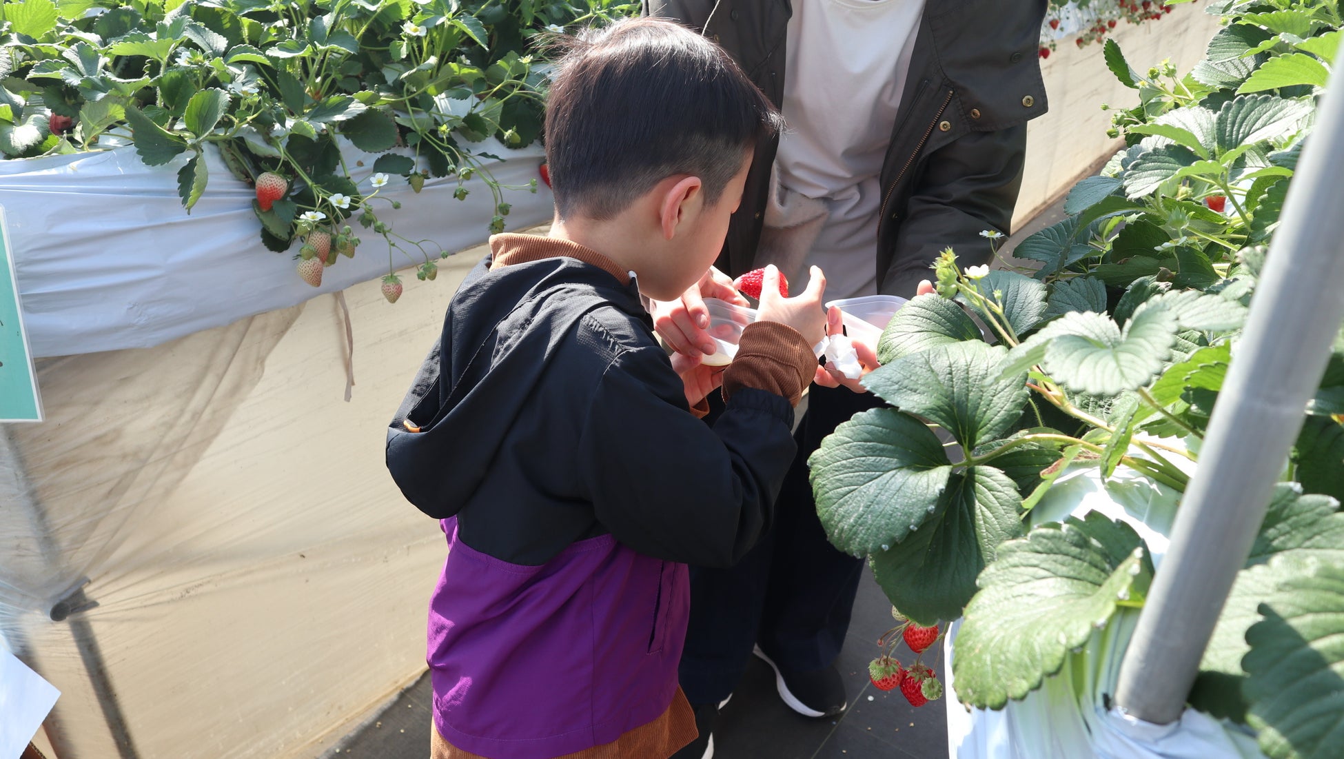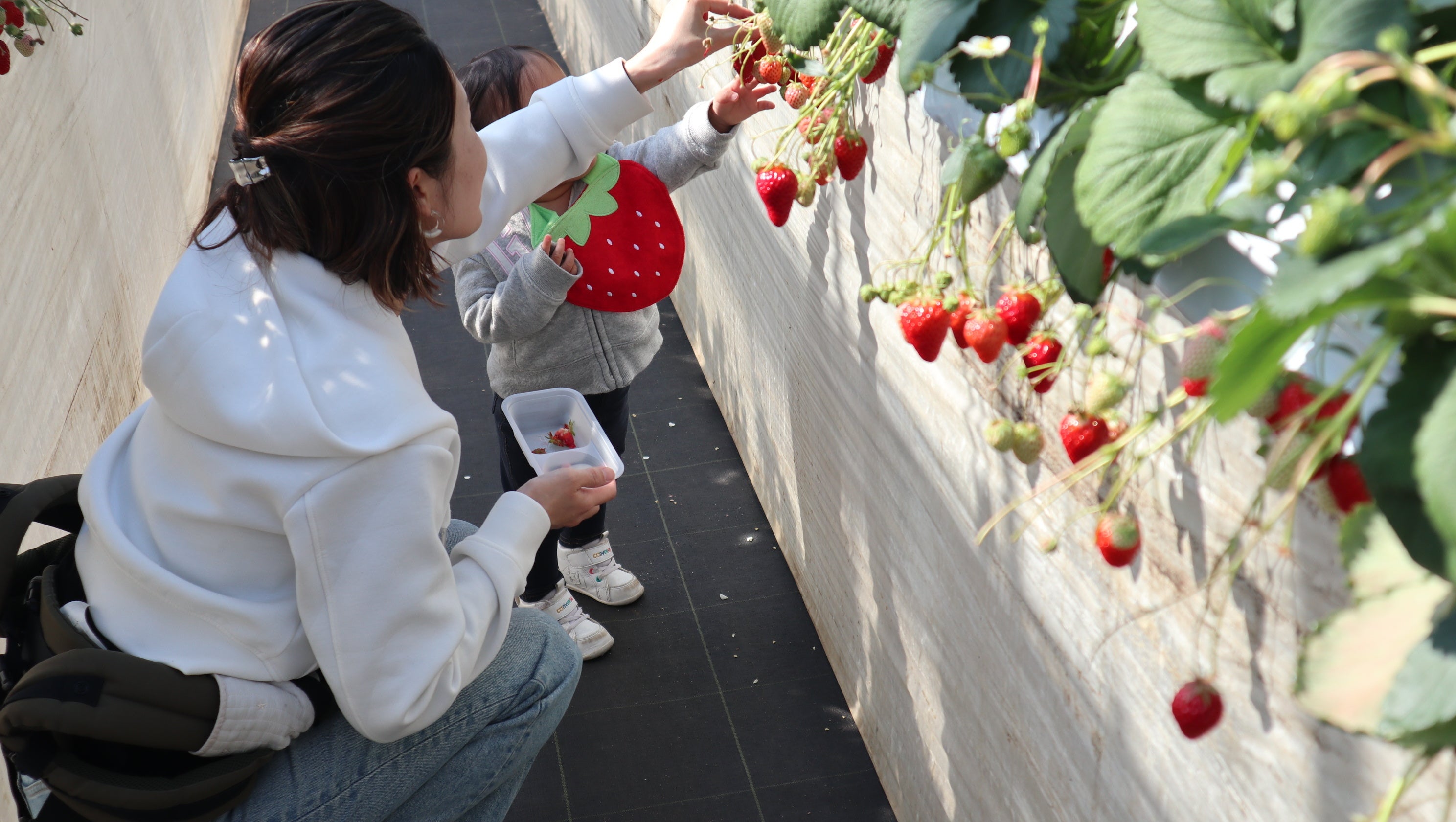 初春の穏やかな天候にも恵まれ、参加者は真っ赤に実ったいちごを摘み取りながら、旬の味覚を楽しまれていました。園内ではご家族連れを中心に笑顔が広がり、子どもたちが夢中でいちごを探す姿や色々な品種を食べ比べ、参加者同士の会話を楽しむ様子も見られました。