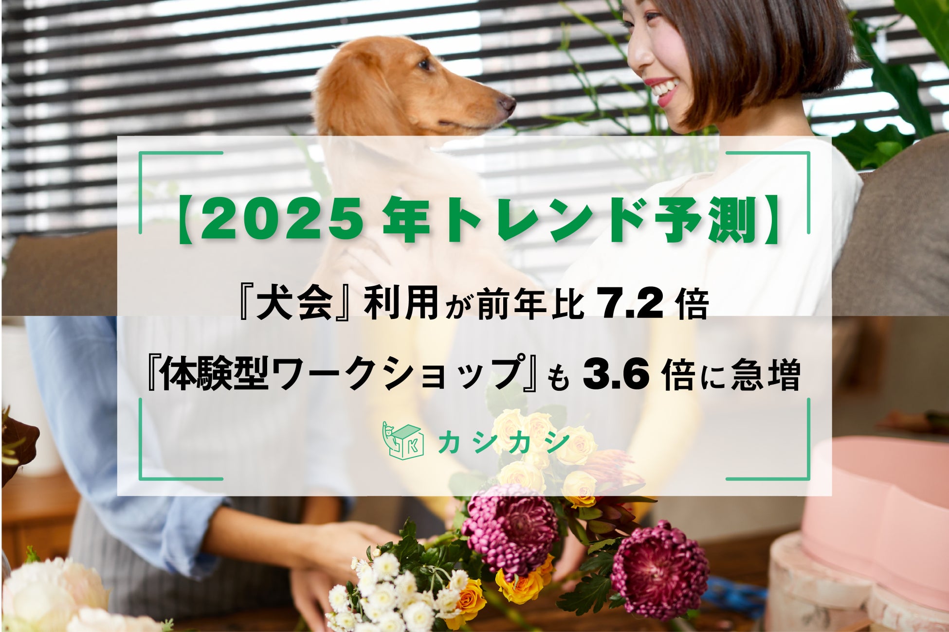 【2025年トレンド予測】レンタルスペース予約サイト「カシカシ」利用動向から見る新たな潮流。『犬会』など “愛犬” と楽しむ利用は前年比7.2倍、『体験型ワークショップ』も3.6倍に急増