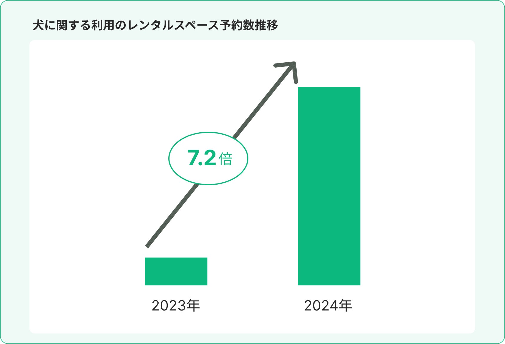 ペットの家族化が深化する現代において、レンタルスペースが「愛犬と飼い主の新たなコミュニティ拠点」として注目されています。「カシカシ」の調査では、「愛犬」関連の利用件数が2024年は前年比の約7.2倍(620%増)という驚異的な伸びを記録。