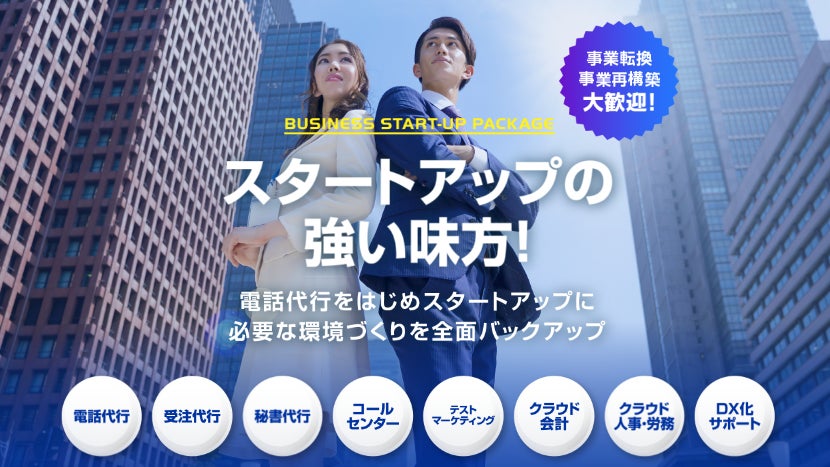 電話代行に関連する業務の代行、バックオフィス業務代行、クラウド化・DX化のサポート、マーケティング施策のサポートなど、スタートアップに必要な各種業務をサポートします。