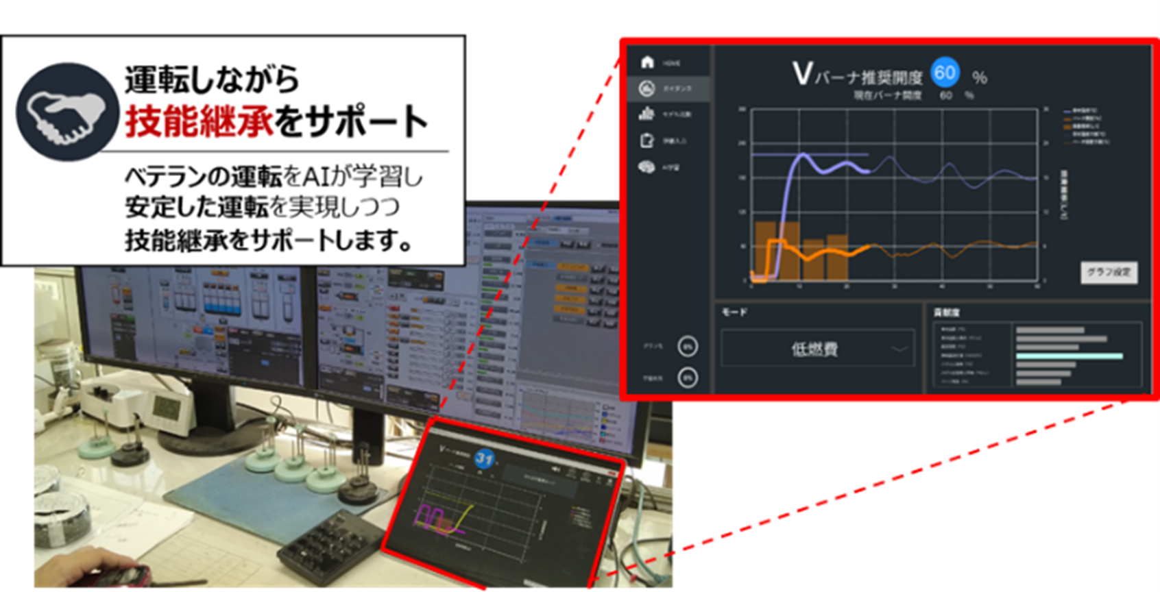 しかし、ベテランオペレーターによる運転は言語化できないノウハウ・暗黙知であるためにその技能継承は難しく、新人の育成に多くの時間と労力を割いていました。