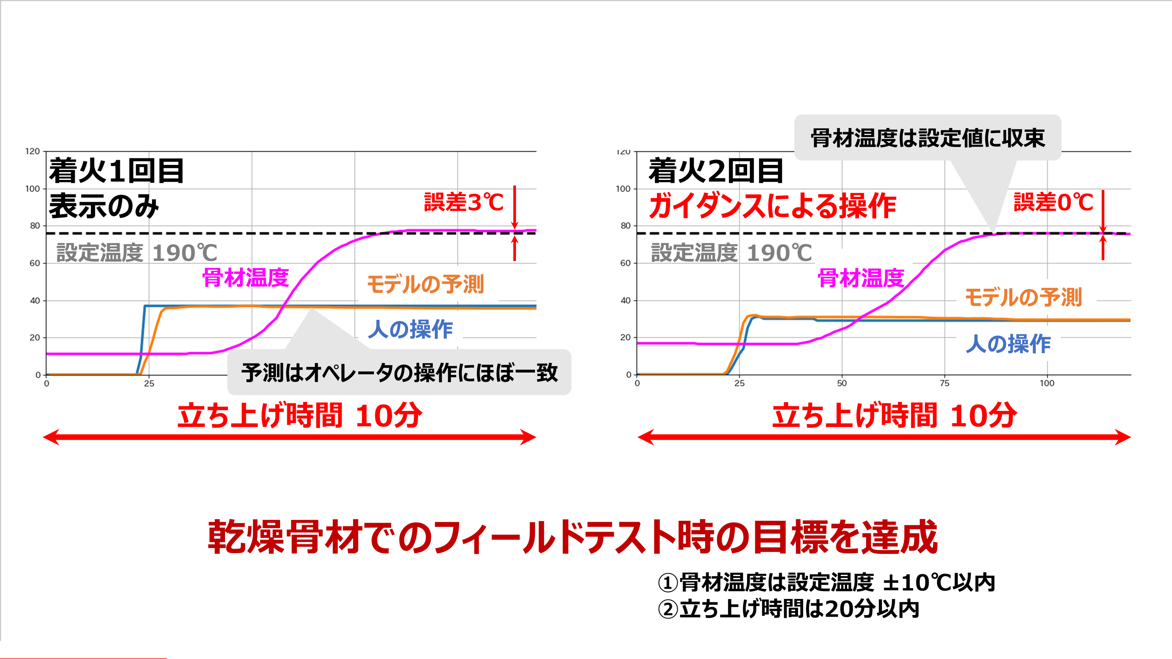 着火一回目はガイダンスを表示するのみの精度評価を行ったところ、問題のない精度を確認することができたため、着火二回目は実際にガイダンスに従った操作をしていただきました。