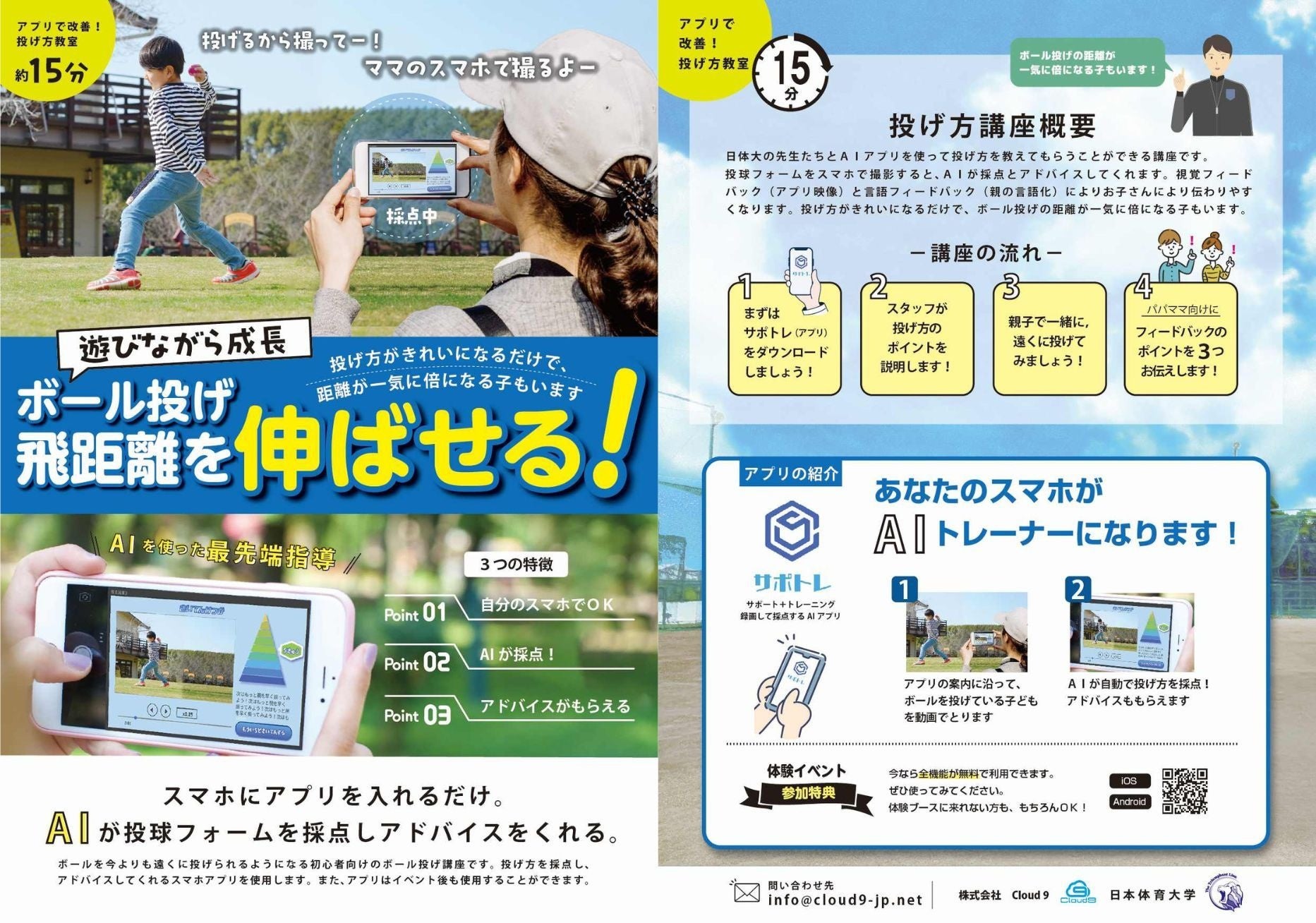 ボール投げは技術指導が難しい種目ですが、Cloud9では「誰もが、どこでも、スポーツを楽しめる社会」の実現を目指し、今後も「サポトレ」の開発とイベント開催を継続してまいります。