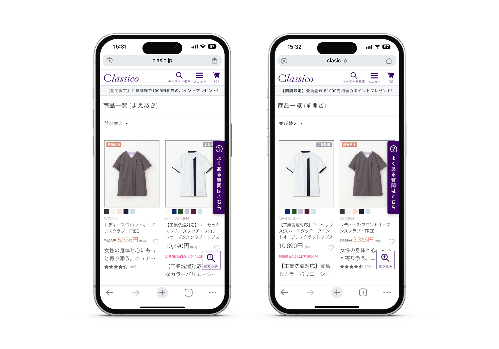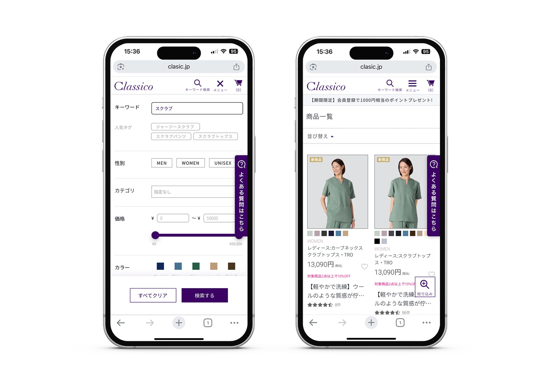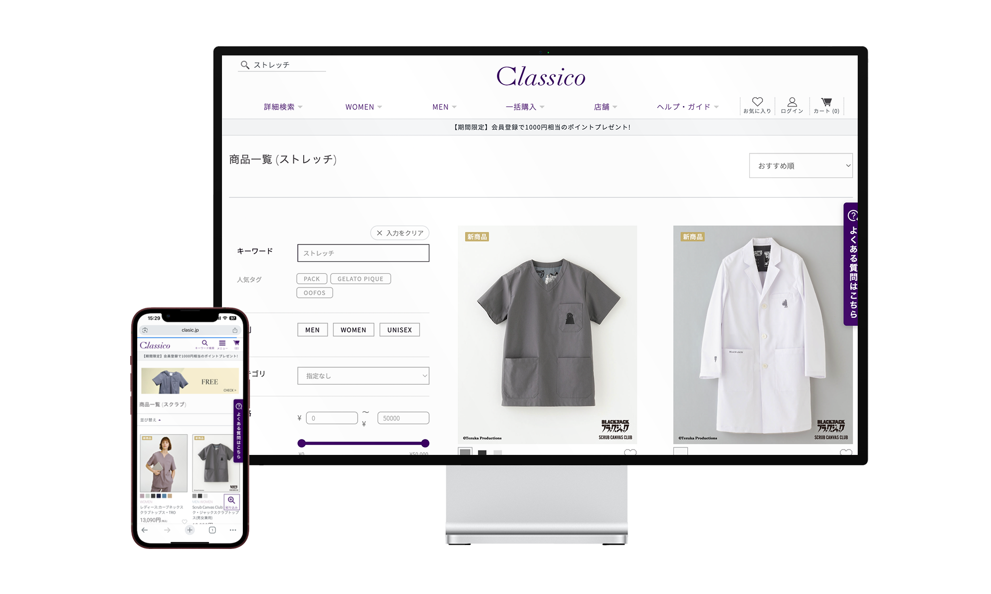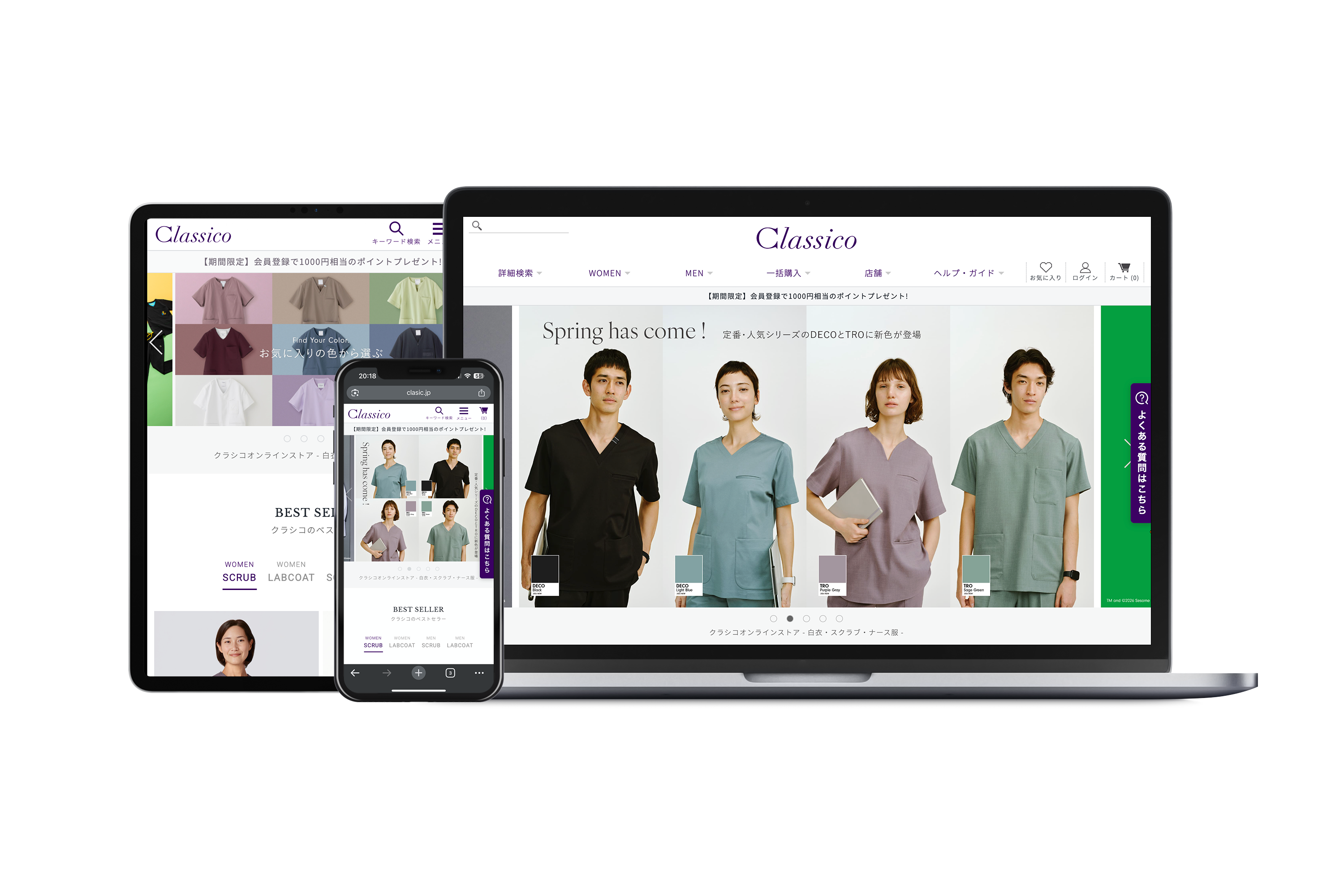 メディカルアパレル「Classico(クラシコ)」オンラインストアが、サイト内検索「ユニサーチ」を導入