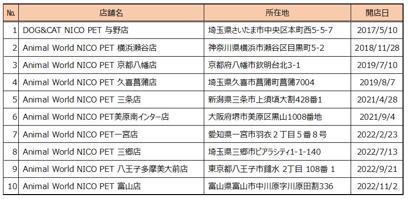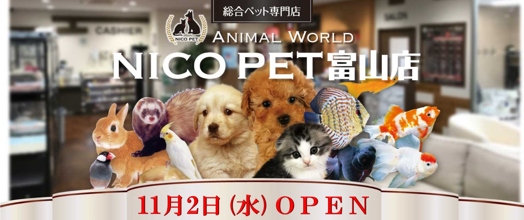 アークランズ株式会社(社長:坂本晴彦、新潟県三条市)は総合ペット専門店NICO PET富山店(富山県富山市)を11月2日(水)にオープンすることをお知らせいたします。本出店により、NICO PETの総店舗数は10店舗になります。
