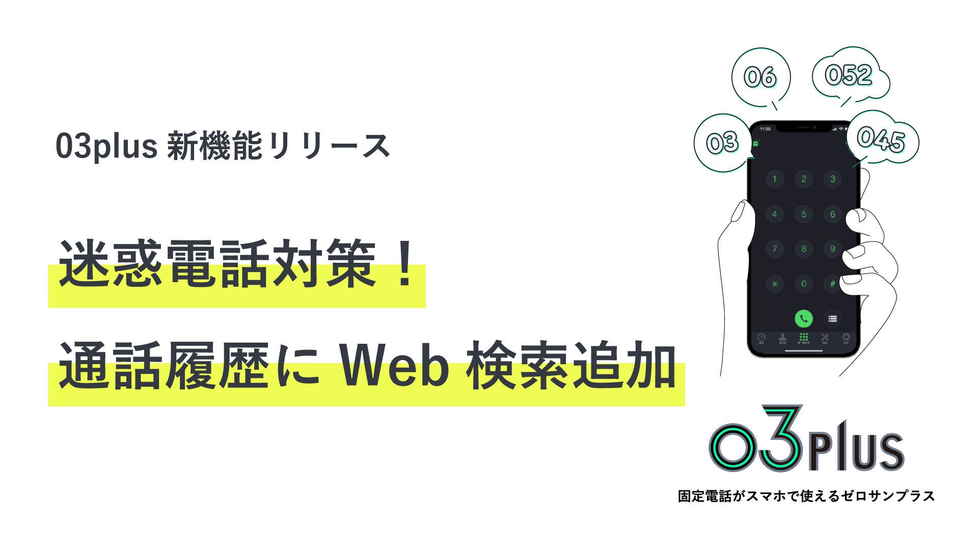 スマホで固定電話が使用できるクラウドPBX「03plus」新機能「迷惑電話対策 Web検索機能」の提供を開始