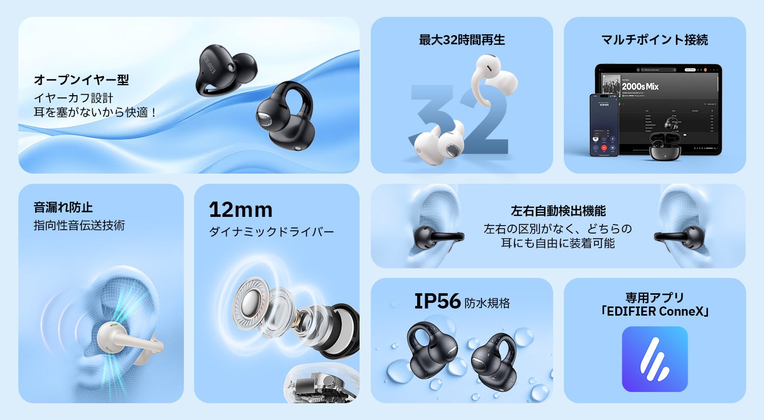 耳に“ふわっ”とフィット、最大32時間再生、重さわずか5.4g。Edifier史上最軽量イヤーカフ型ワイヤレスイヤホン「Comfo Q」