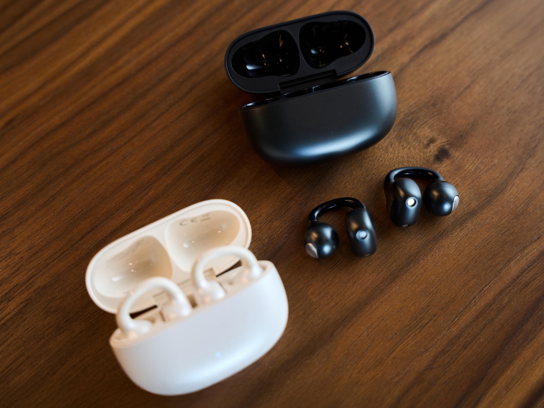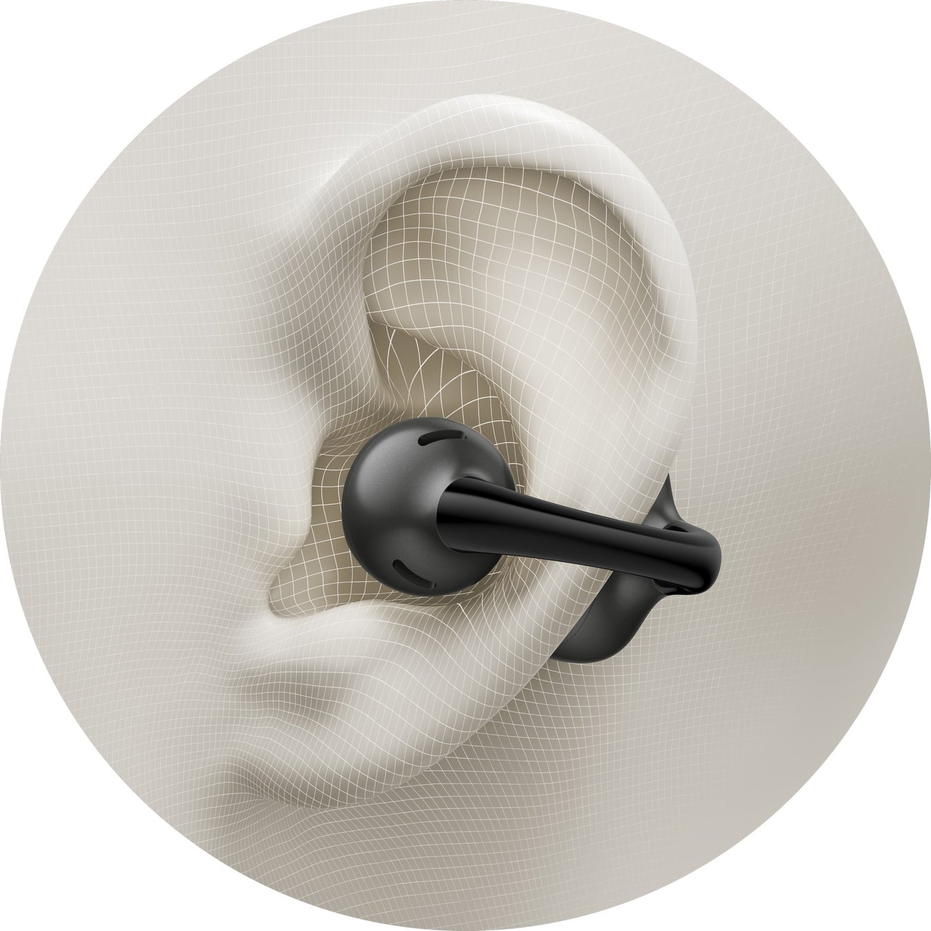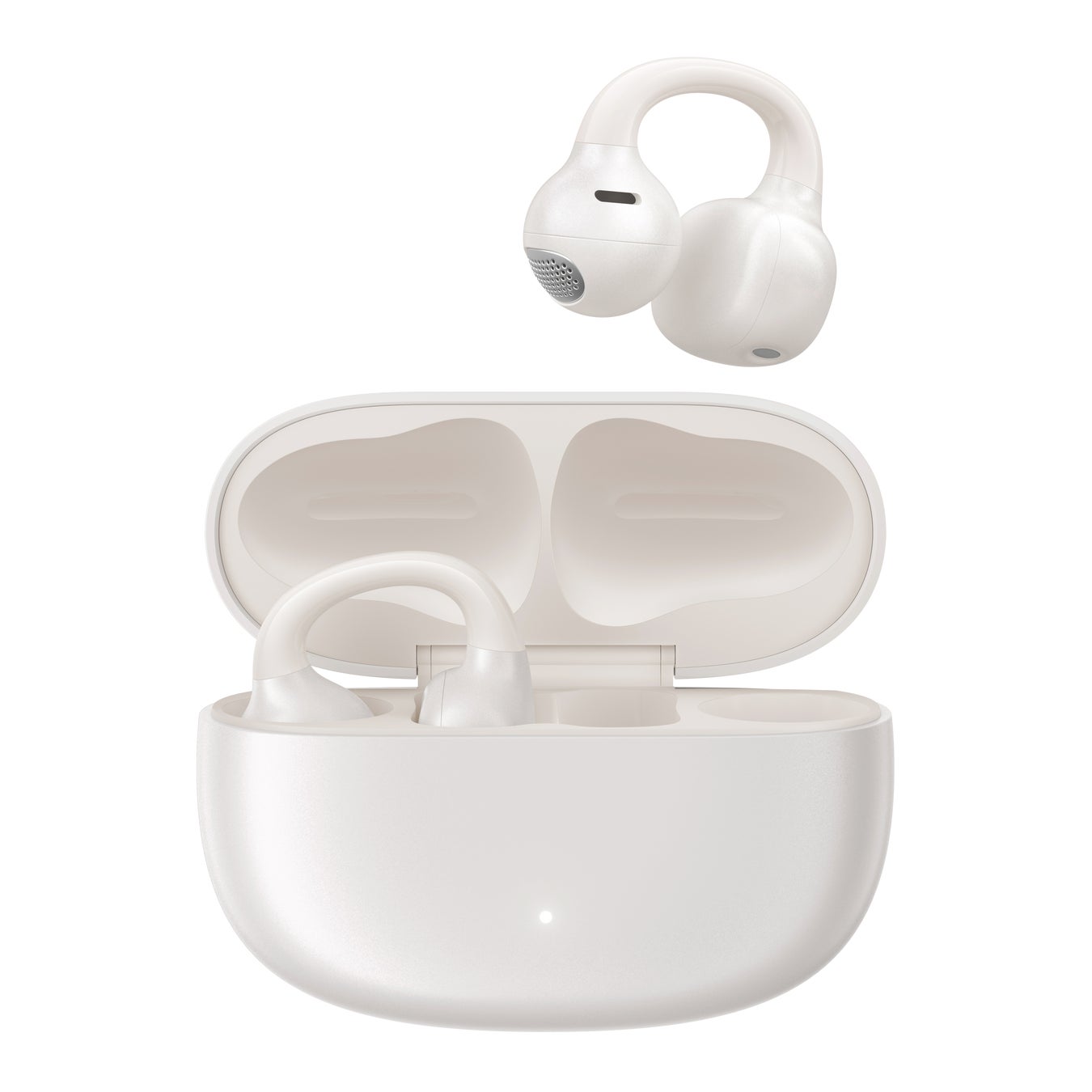 形状記憶特性を備えたニッケル合金ワイヤを採用し、片耳わずか約5.4gの軽量設計により、長時間でも快適な装着感を実現いたしました。柔軟性のある構造で多様な耳の形に自然にフィットし、左右対称のデザインにより、左右を問わず充電ケースへの収納や装着が可能となっております。