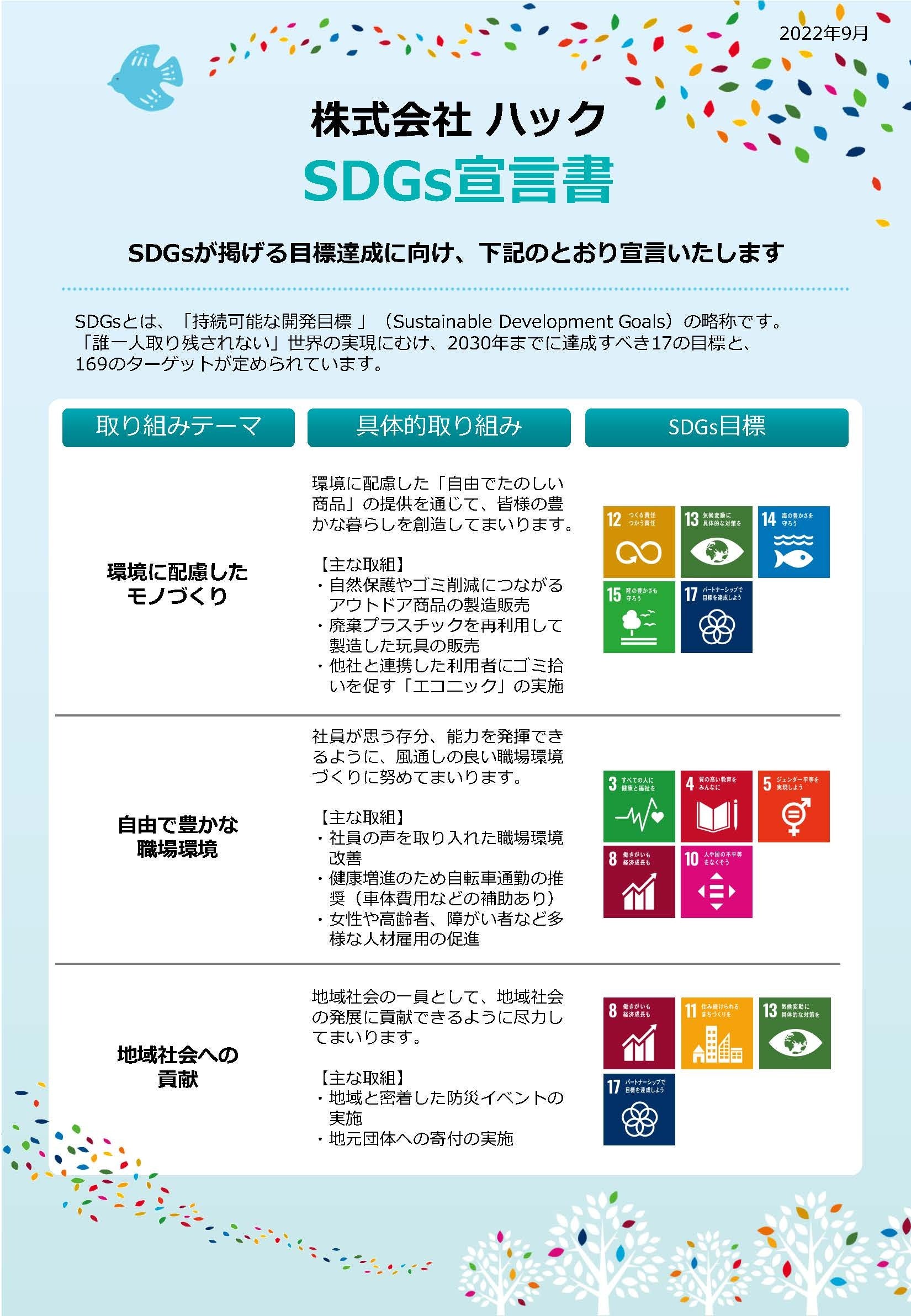 SDGsが掲げる目標達成に向け、以下の通り宣言します。