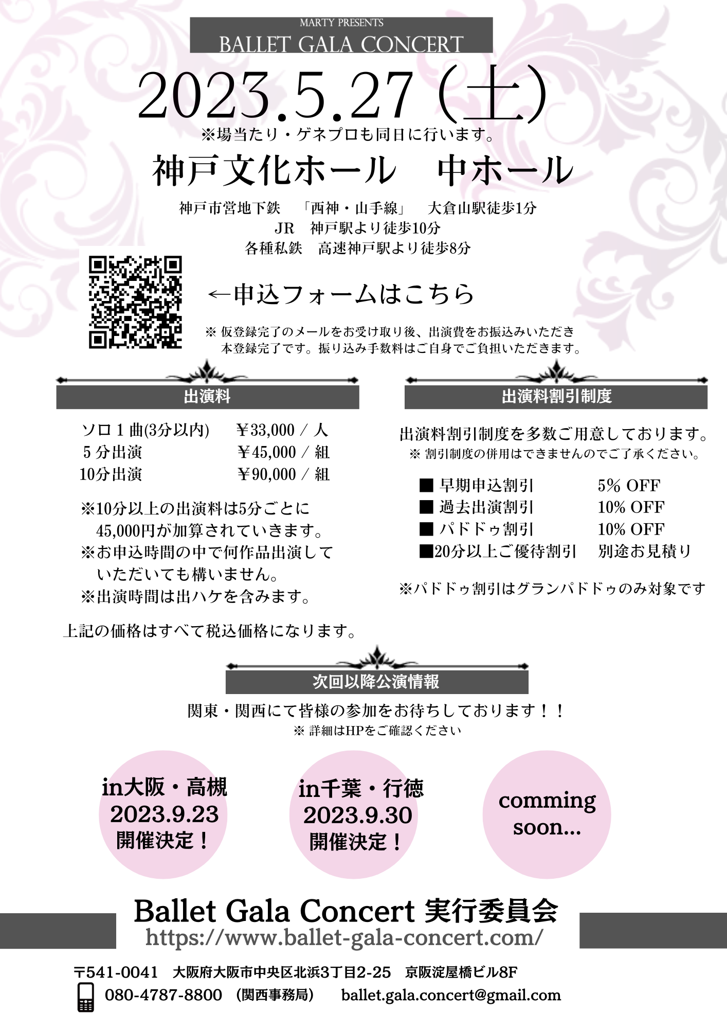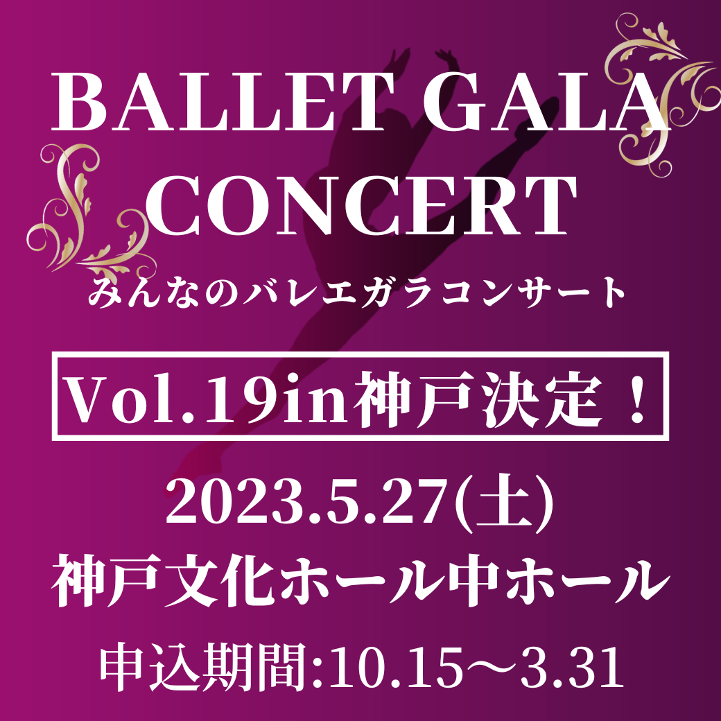 【まもなく】みんなのバレエガラコンサートvol.19 in神戸 15日より出演者お申込開始!