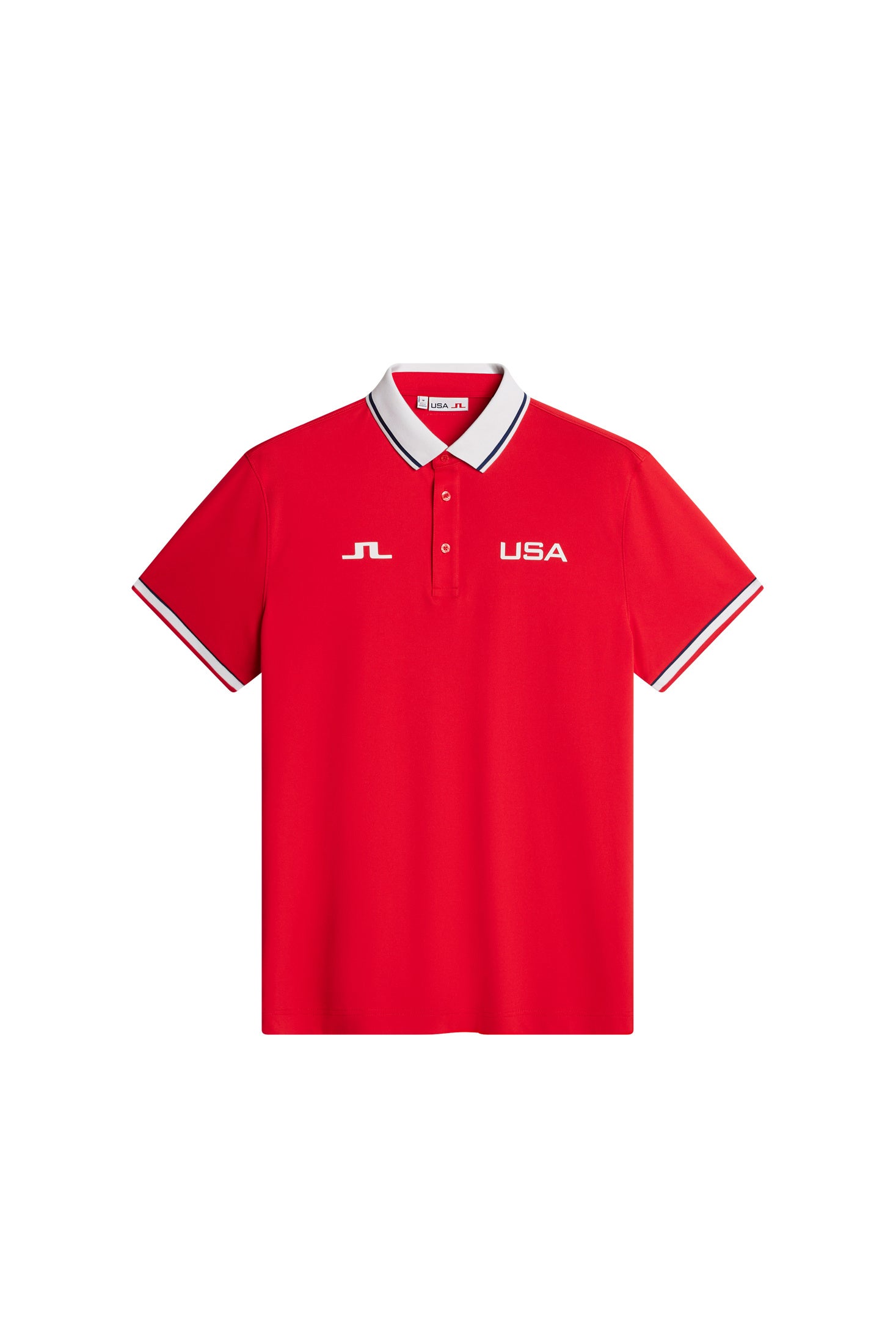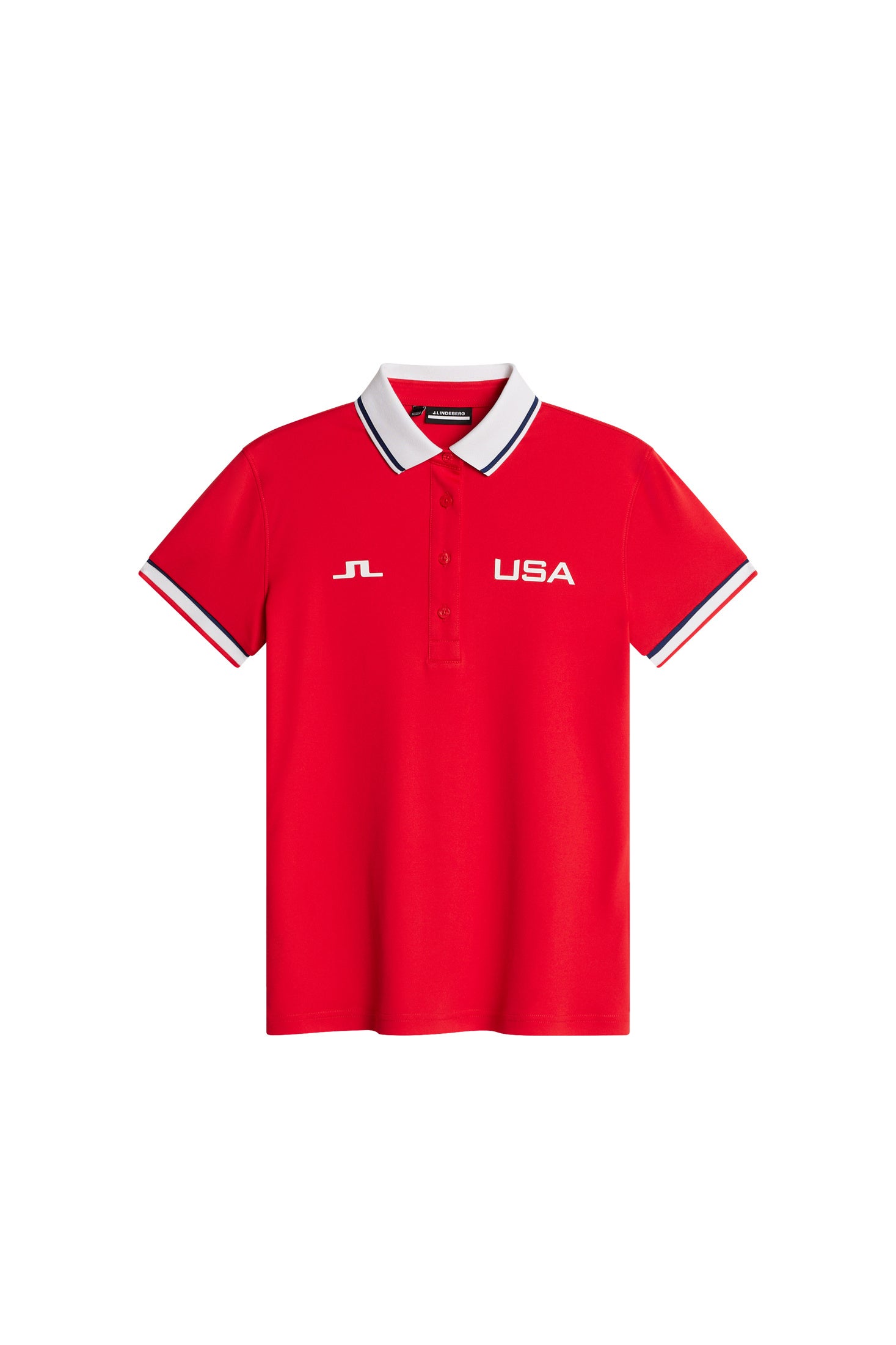 J.LINDEBERG チームによりデザインされた本コレクションは、USAの国旗とカラーに敬意を表し、革新的な機能を備えています。これによりアスリートにとって最高のパフォーマンスと快適性を保証します。細部にまでこだわったウェアは、3Dテクノロジーを駆使し、精密さとフィット感を追求、立体的なカットラインにより体の動きを妨げずパフォーマンスを高めます。大胆でグラフィカルなUSA国旗プリントから繊細なディテールまで、すべてのデザインにアメリカのクラシックな赤、白、青が織り込まれ、ナショナルカラーが表現されています。