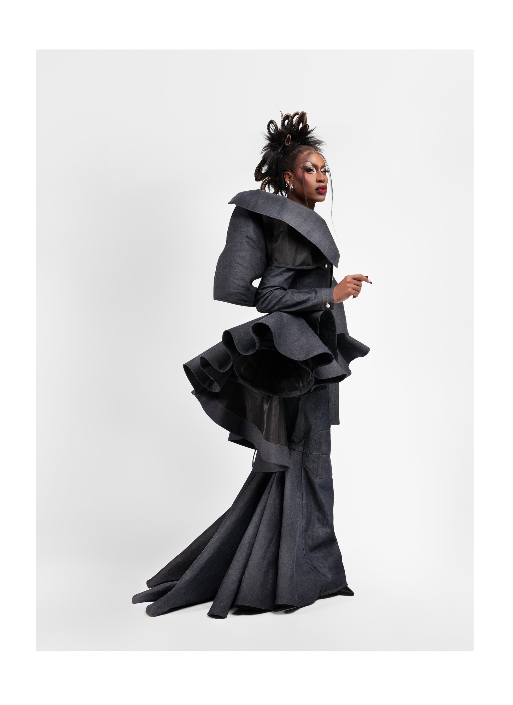 G-Star が今回パートナーシップを組んだのは、ベンジ・ナインハウス(Benji Nijenhuis)とそのパートナー、ニモ・シュミネ(Nemo Cheminée)によって創設されたニッチなデザインスタジオ 「ザ・ナイトメア・ディスオーダー」(The Nightmare Disorder)です。ナインハウスは自身のレーベルを展開するほか、G-Star のファッションデザイナーとしても活躍しており、G-Star におけるデニムの専門知識とクチュールの世界を繋ぐ理想的な架け橋となっています。同スタジオは、各ドラァグクイーンのスタイルやビジョンに合わせ、3 種類の衣装を個別にデザインしました。カスタムメイドの各ルックはどれも、世界でもっとも大衆的で、かつ反抗的なカルチャーを象徴するファブリックであるデニムを使用しています。
